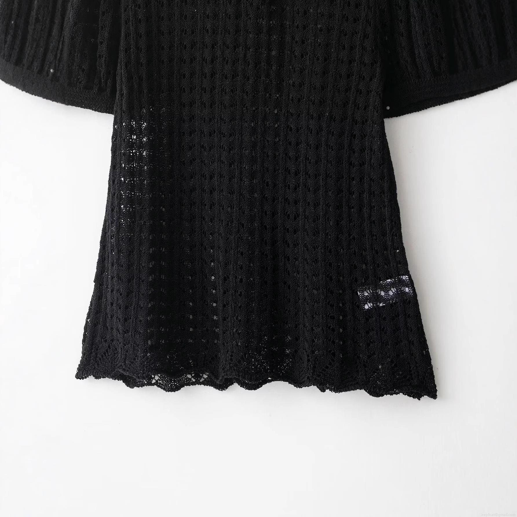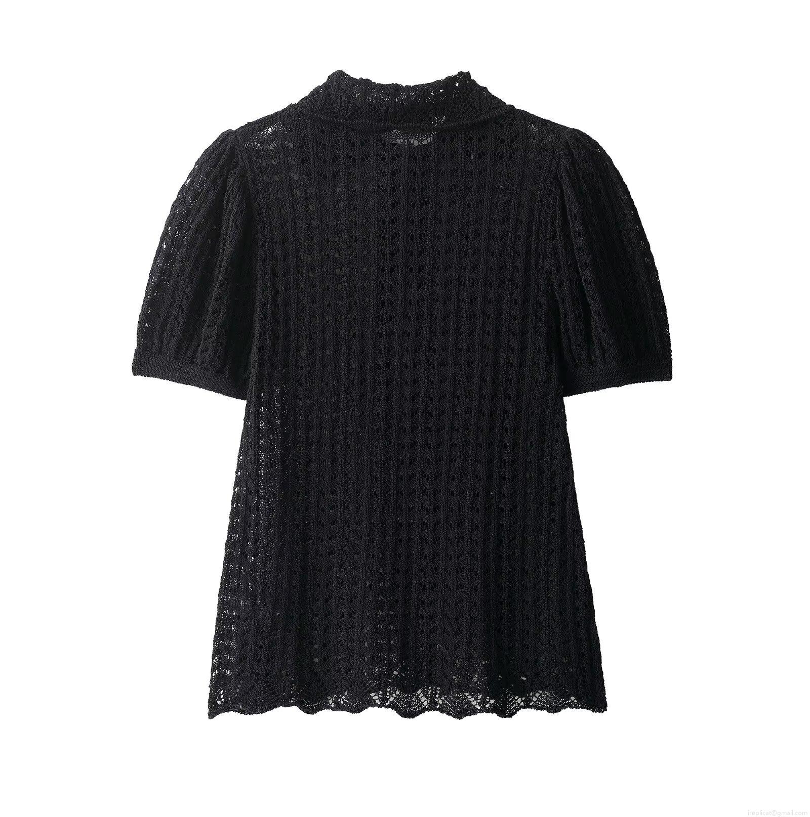 Women's Hollow Out Knitted Polo Shirt Short Sleeve Puff Sleeve Top Casual Black Crochet Polyester T-Shirt For Women Daily Streetwear Comfort Tee