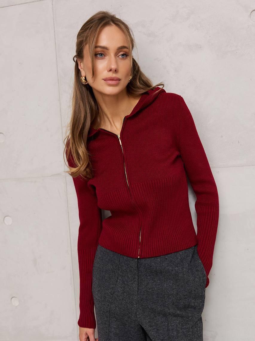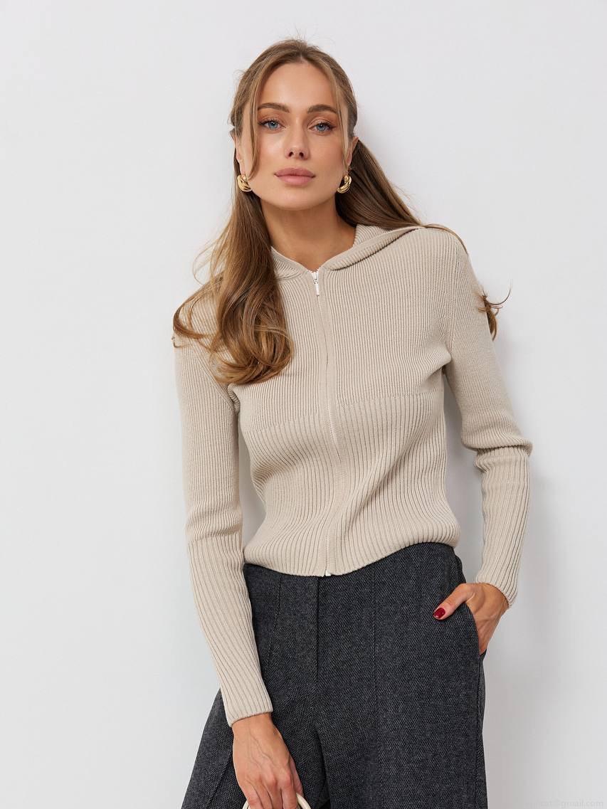 Women's Hooded Knit Sweater Cotton Blend Zipper Front Long Sleeve Ribbed Solid Color Slim Fit Hoodies Autumn Winter Casual Pullover Top