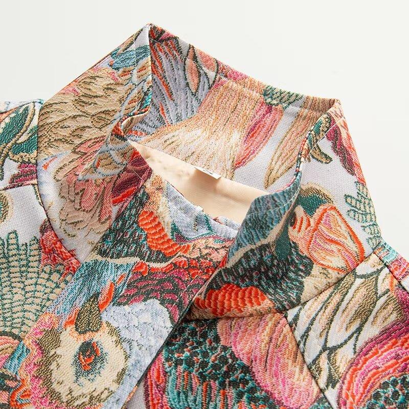 Women's Jacket Coat 100% Polyester Heavy Duty Jacquard Fabric Metallic Zipper Long Sleeve Lapel Collar Front Pockets Bird Floral Print Vintage European Street Fashion Regular Fit Women Lady