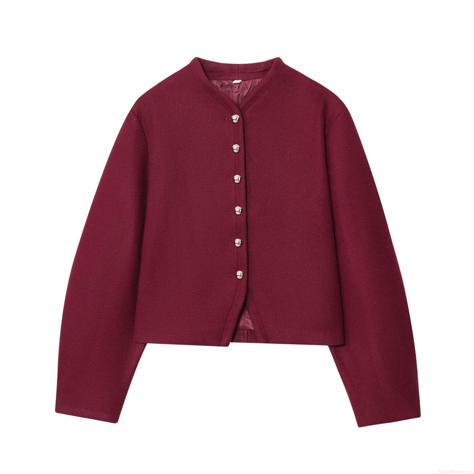 Women's Jacket Woolen Texture Polyester Silver Metal Buttons Single Breasted Long Sleeve Round Neck For Daily Streetwear Autumn Fashion Baseball Uniform Outerwear Elegant