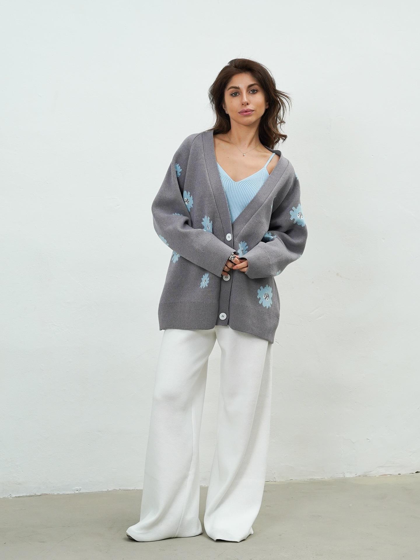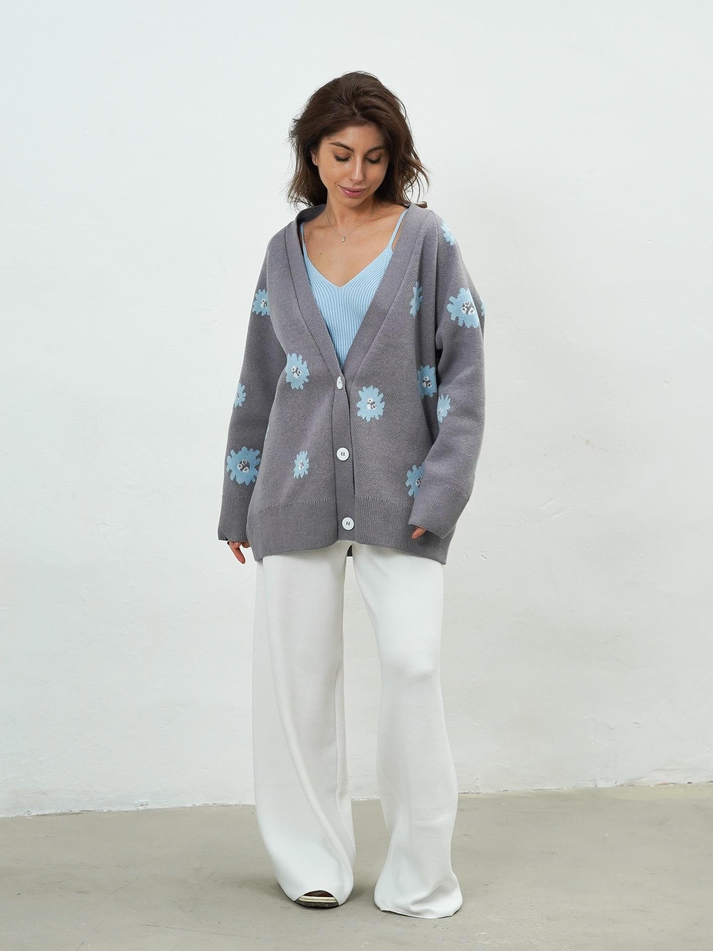 Women's Knit Cardigan Sweater Daisy Embroidery Cotton Polyester Blend Loose Fit Warm Button Down Lazy Style Knitwear For Autumn Winter Casual Outerwear Ladies Top