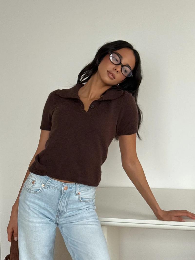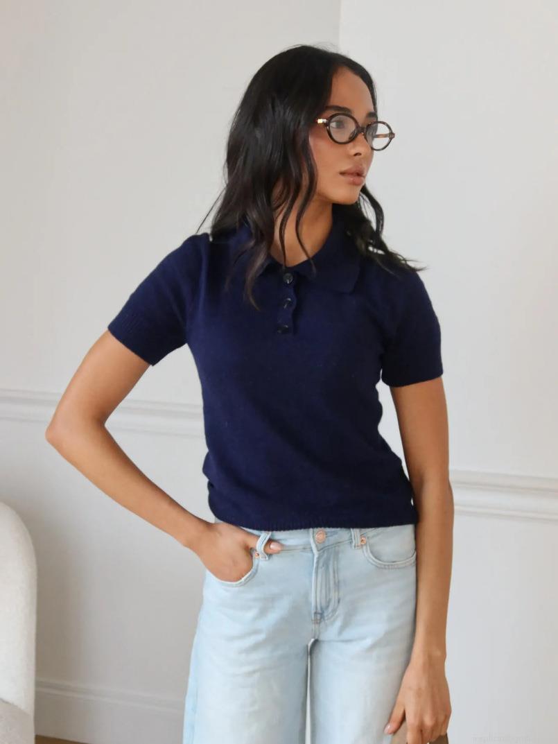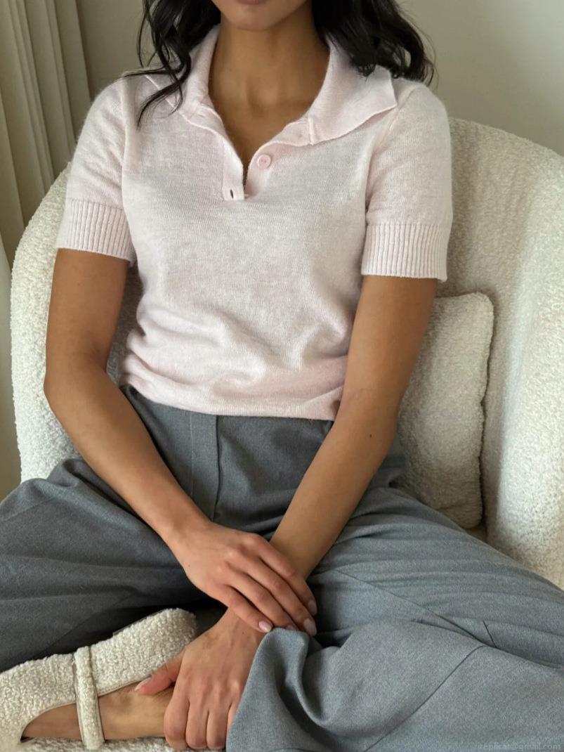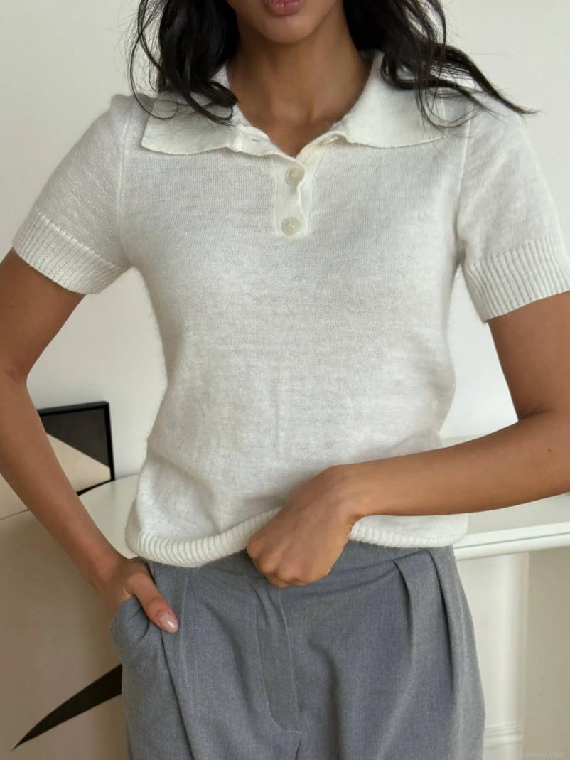 Women's Knit Polo Shirt Short Sleeve Cotton Blend Solid Color Summer Top Ribbed Trim Casual Slim Fit Pullover Breathable Soft Commute Knitwear For Women Fashion Gentle Style T-Shirt