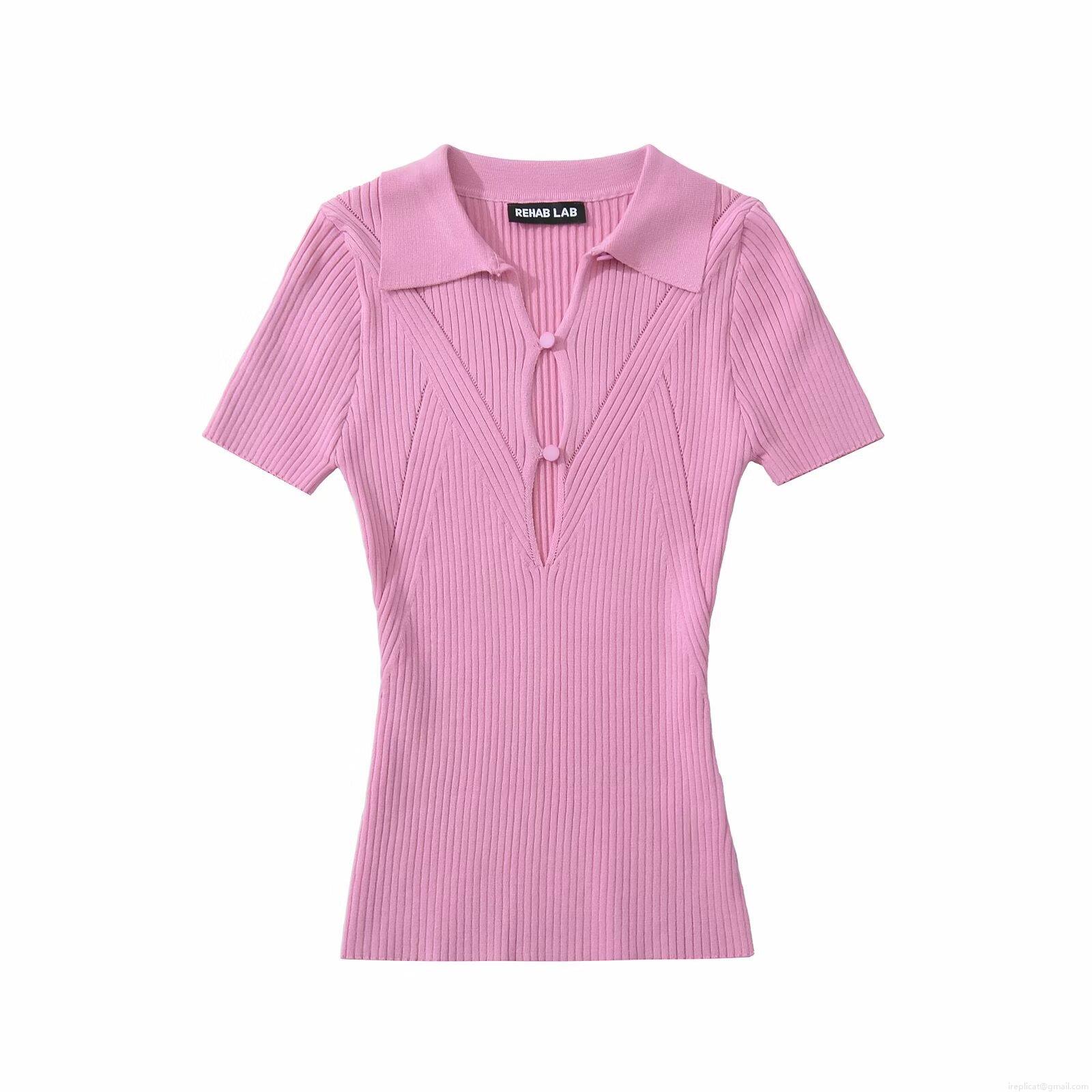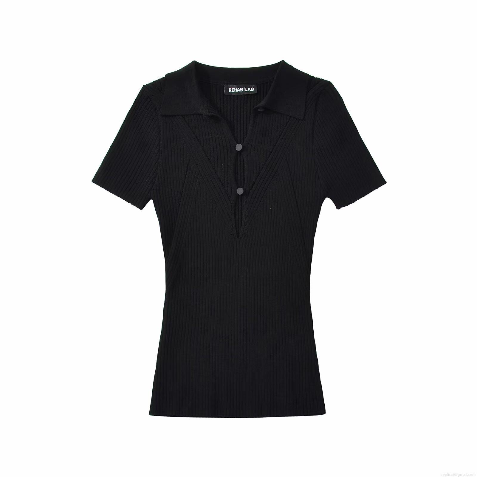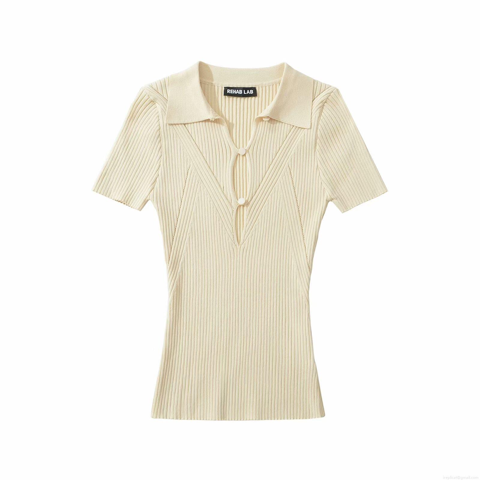 Women's Knit Polo T-Shirt Rayon Nylon Ribbed Hollow Out Single Breasted Short Sleeve Slim Fit Lapel Collar Top European American Casual Streetwear
