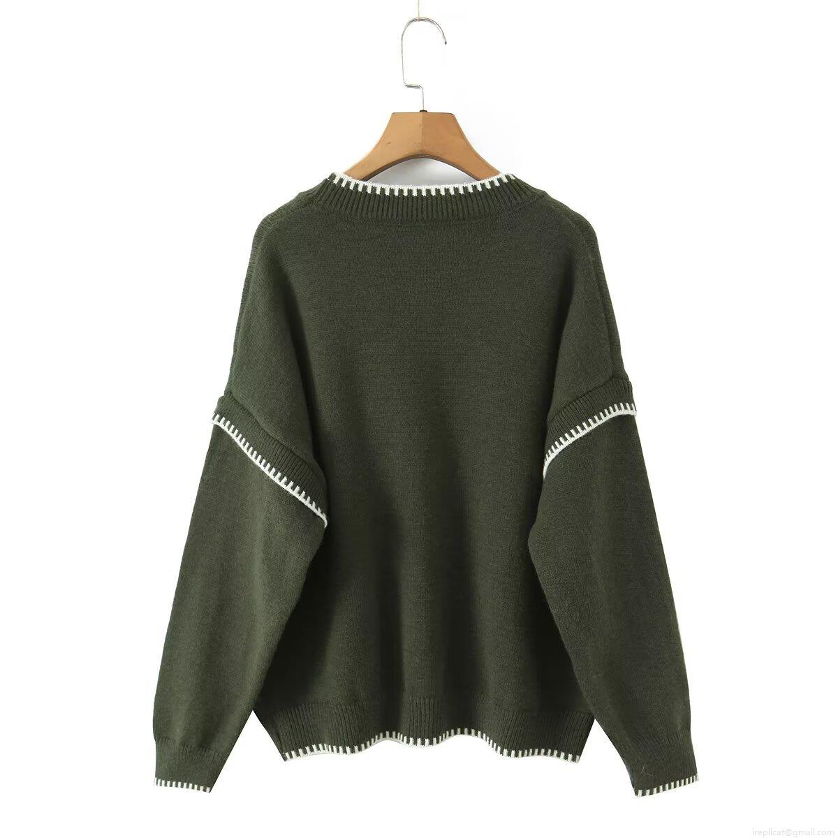 Women's Knit Sweater Contrast Stitching Crew Neck Long Sleeve Loose Pullover Casual Autumn Jumper Streetwear Top Fashion Cozy Outfit
