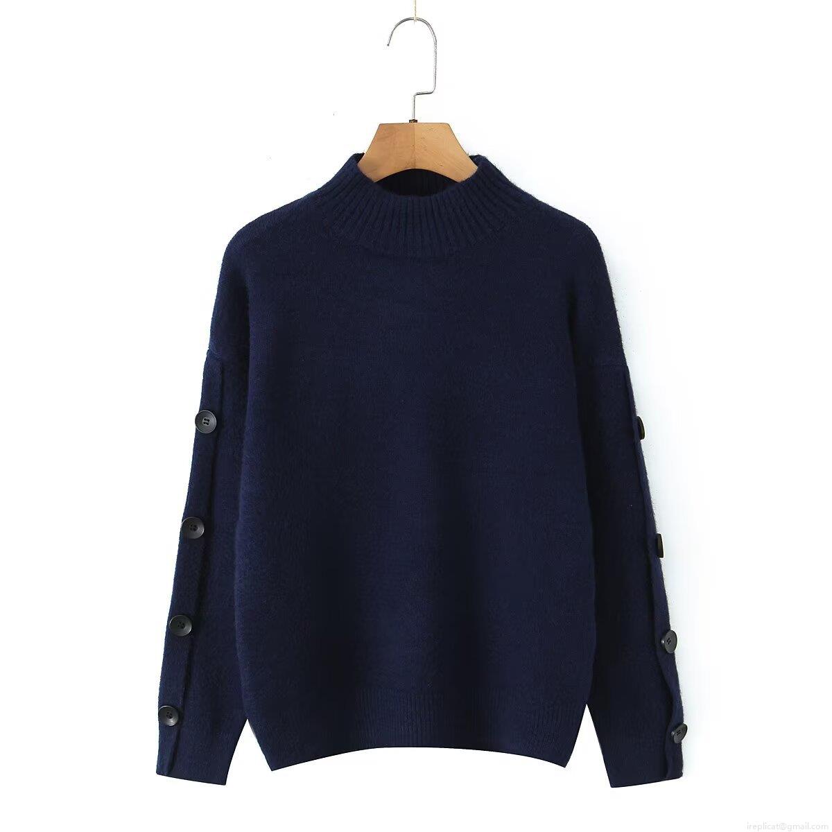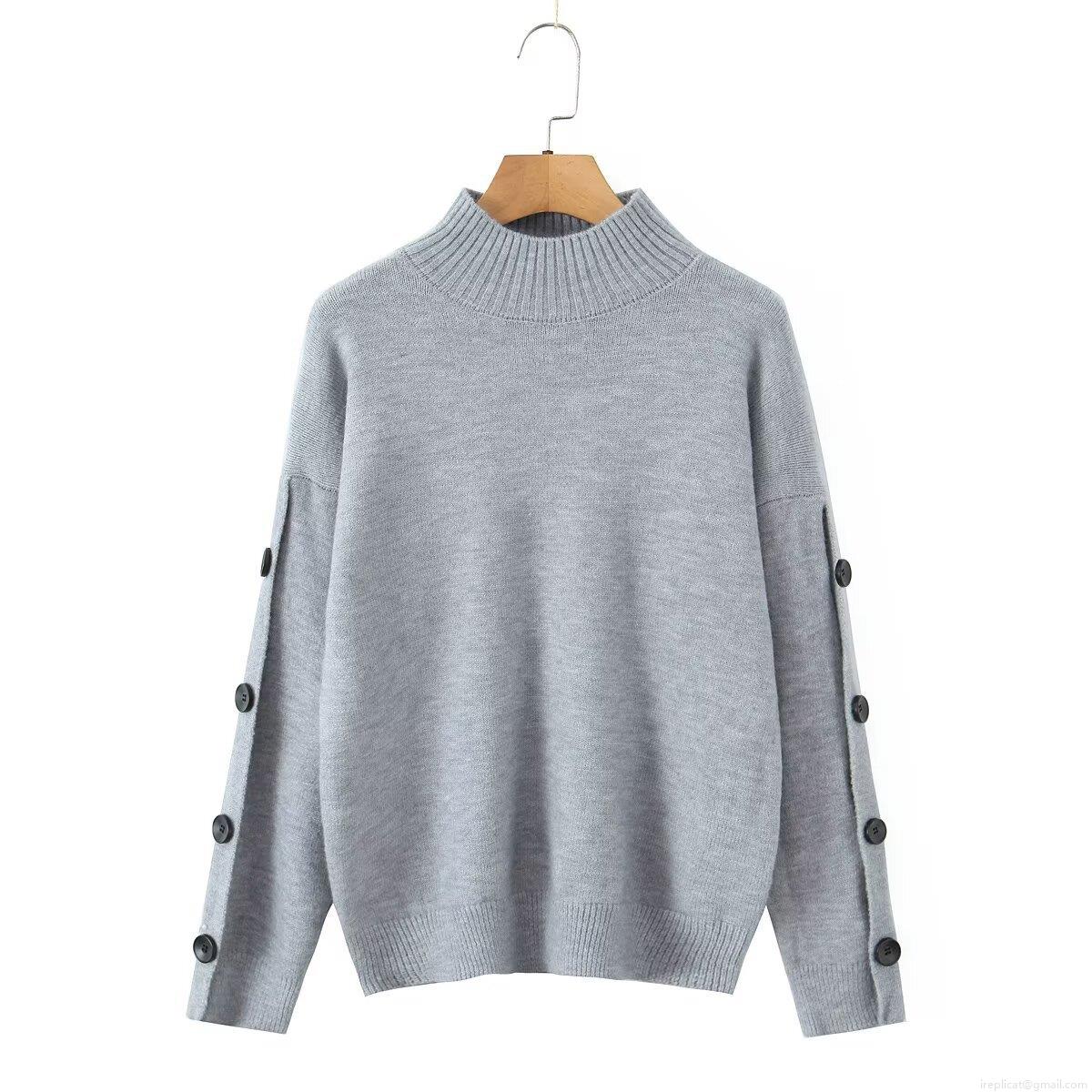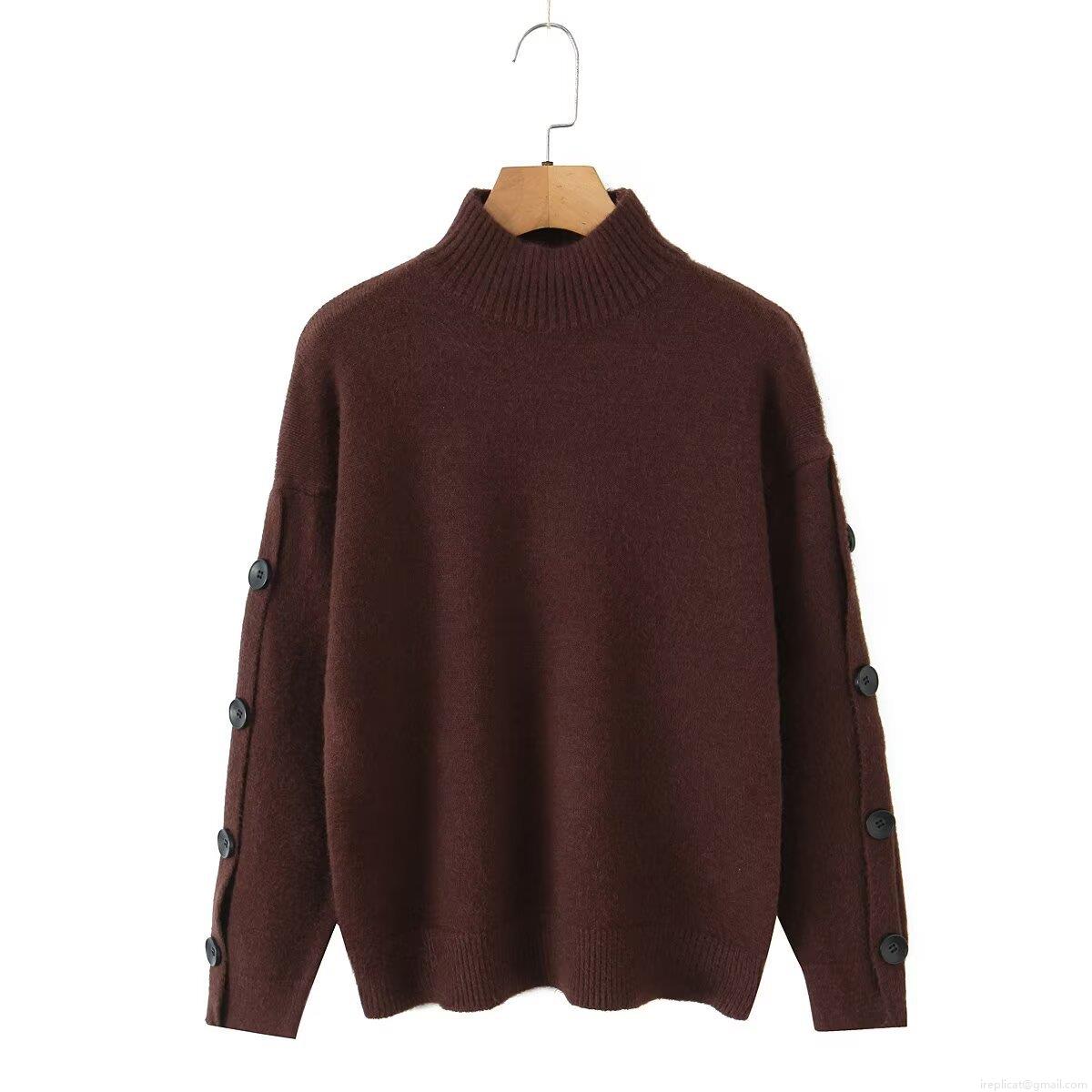 Solid Color, Button Decoration, Ribbed Seam, Mock Neck