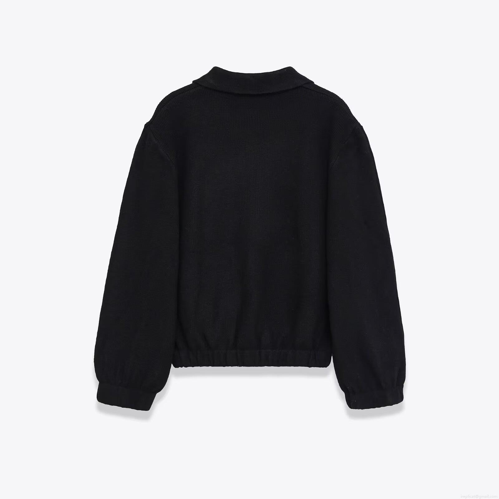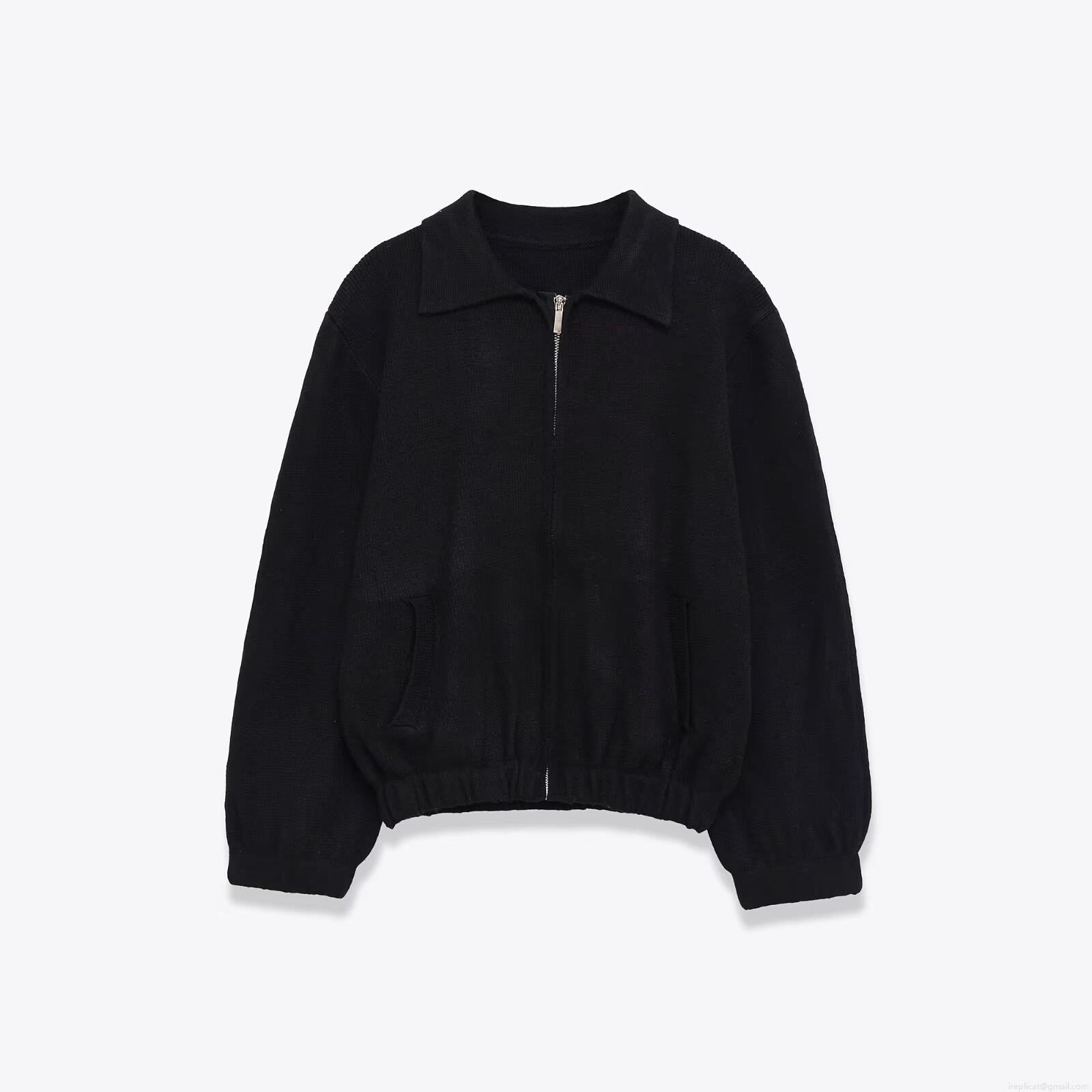 Women's Knitted Bomber Jacket Lapel Zipper Long Sleeve Loose Fit Polyester Knit Outerwear Solid Color Casual Streetwear Jacket For Women