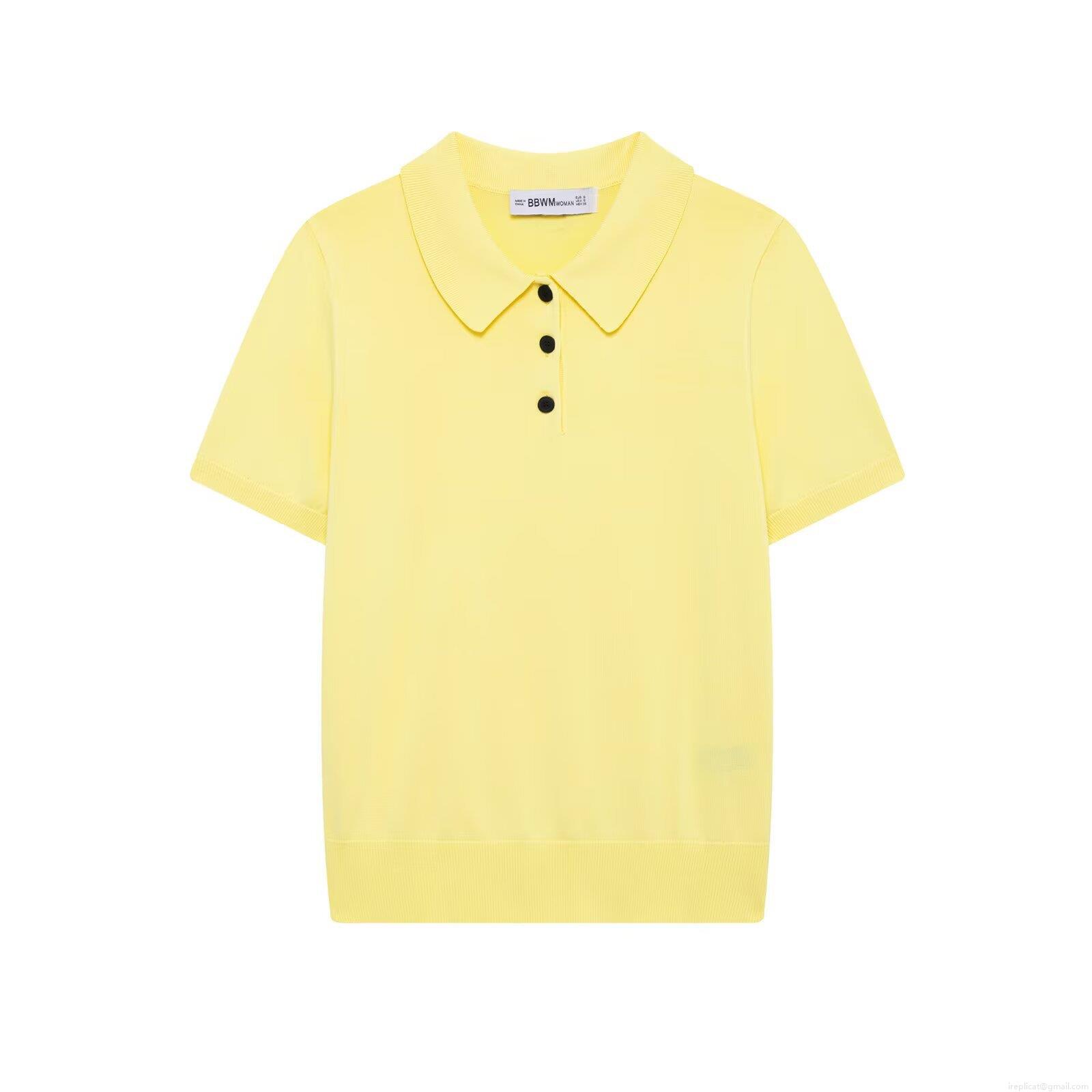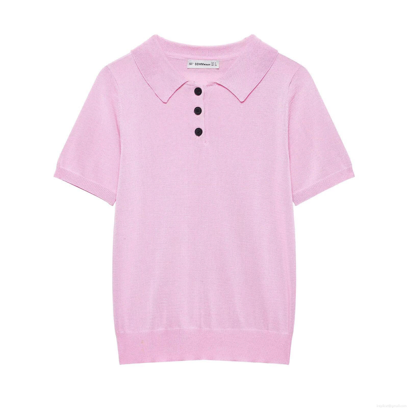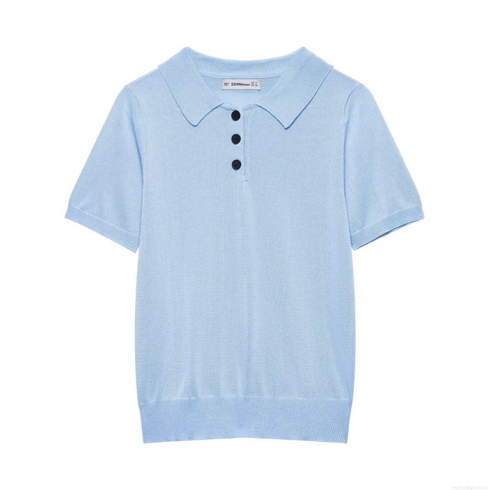 Women's Knitted Polo T-Shirt 100% Polyester Short Sleeve Lapel Button Up Summer Top Solid Color Casual Chic Western Streetwear Fashion Regular Fit Ladies Clothing