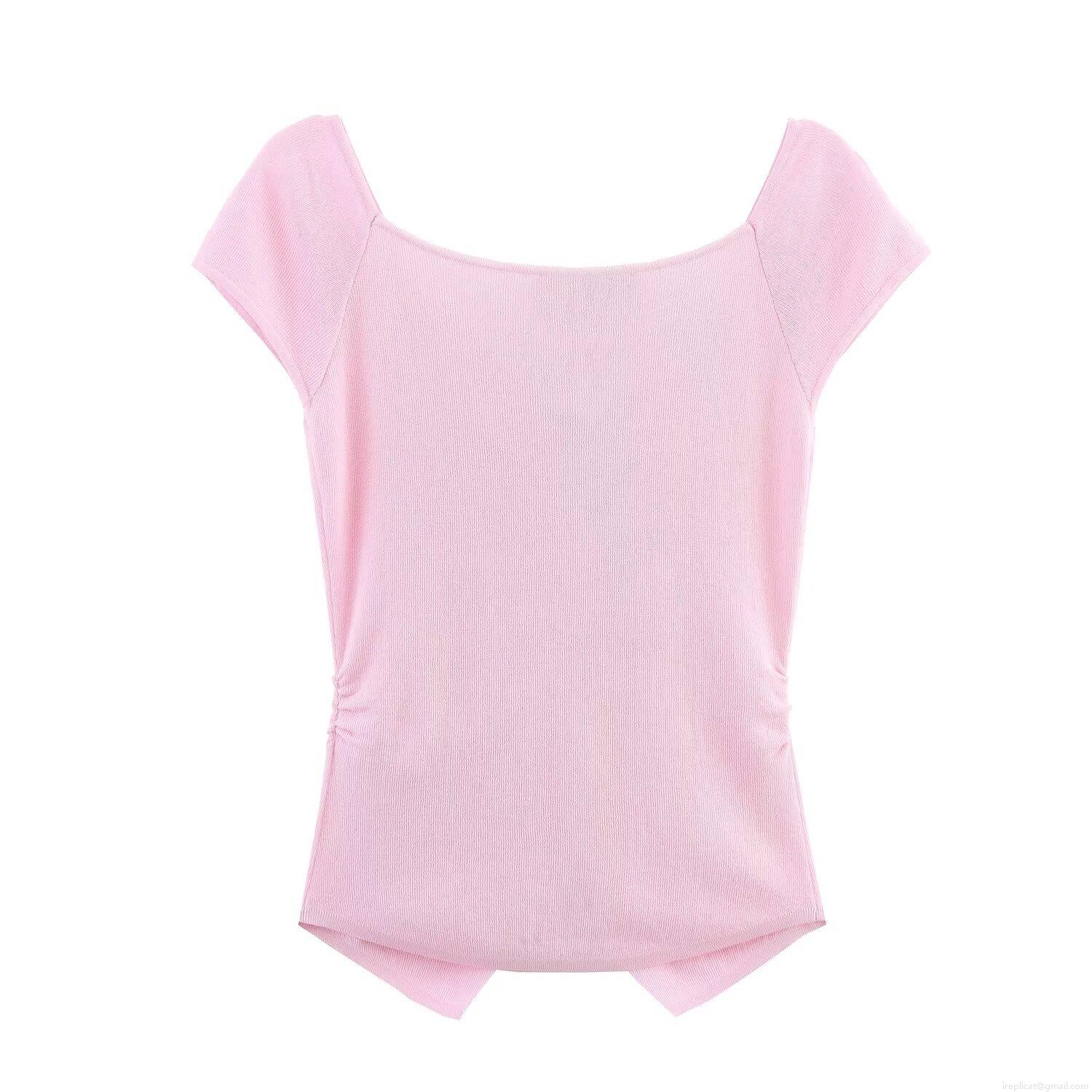 Women's Ribbed Knit T-Shirt Fake Two-Piece Knot Front Shawl Design...