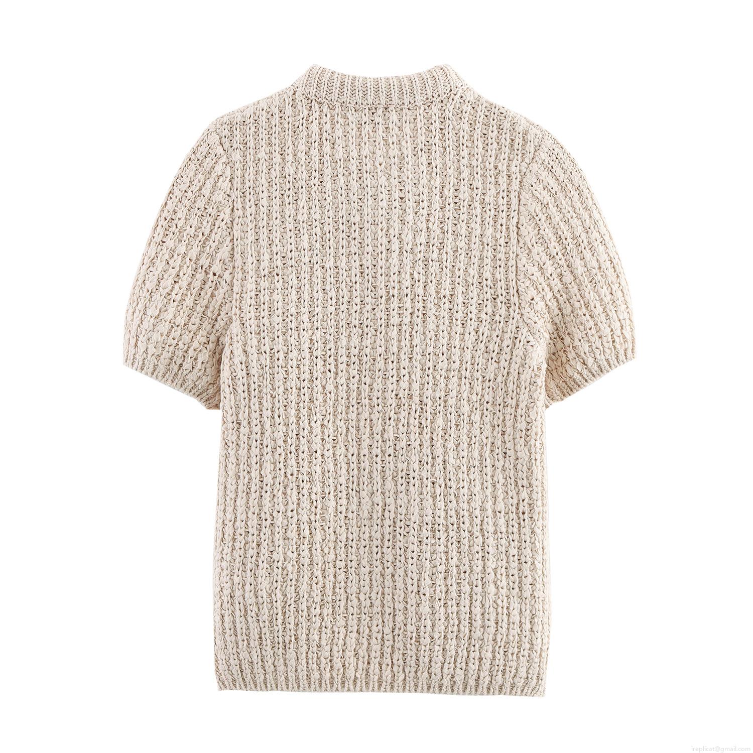 Women's American Retro Sexy Hot Girl Style Crochet Polo Shirt Hollow...