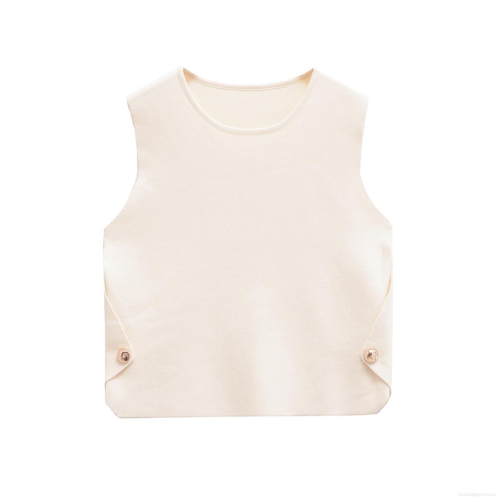 Women's Knitted Vest Sleeveless Crew Neck Pullover With Side Buttons Casual Solid Color Ribbed Knit Sweater Tank Top Streetwear Gilet For Women