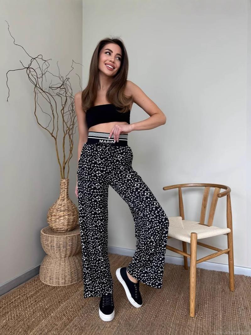 Leopard Print, Floral Pattern, Elastic Waistband, Letter Woven Label, Wide-leg Style, Micro-speaker Design, Fashion Prints