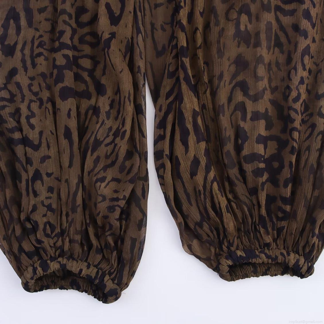 Women's Leopard Print Pleated Lantern Pants High Waist Casual Loose Smocked Cuff Trousers Soft Breathable Polyester For Daily Vacation Ladies Streetwear