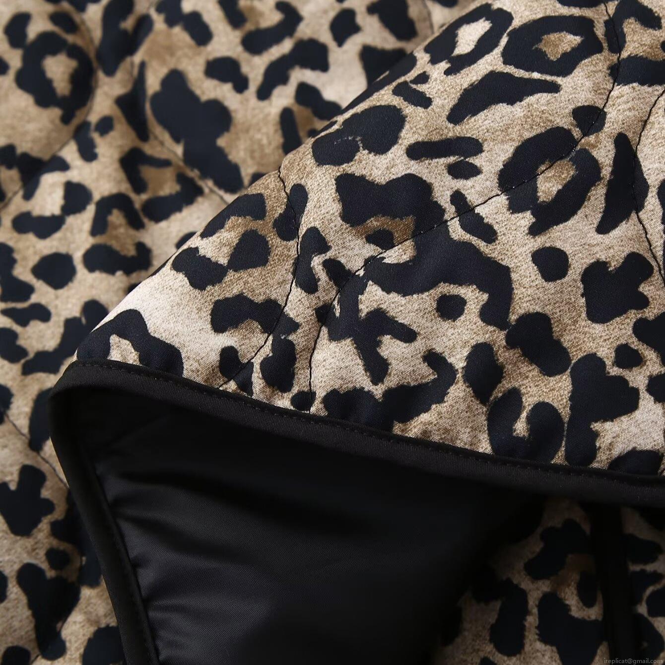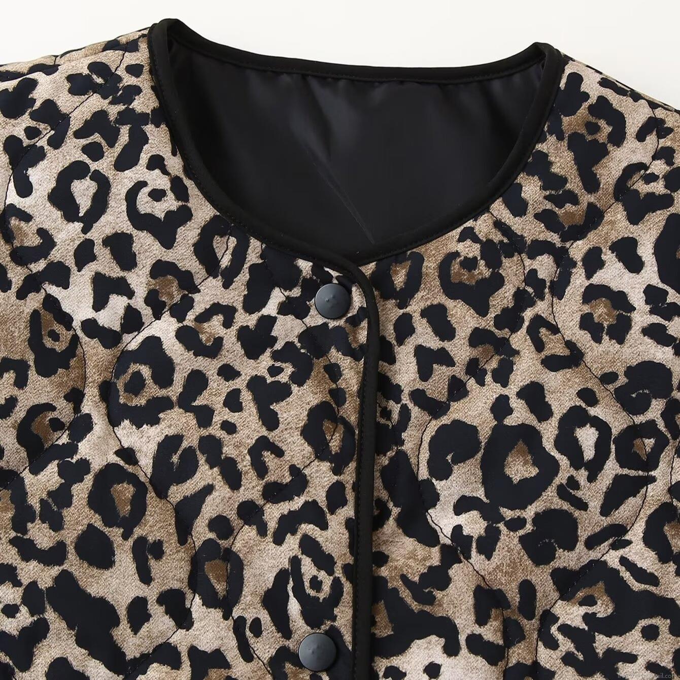 Women's Leopard Print Quilted Jacket Loose Fit Long Sleeve Round Neck Padded Coat Winter Warm Outerwear Casual Button Up Jacket with Pockets