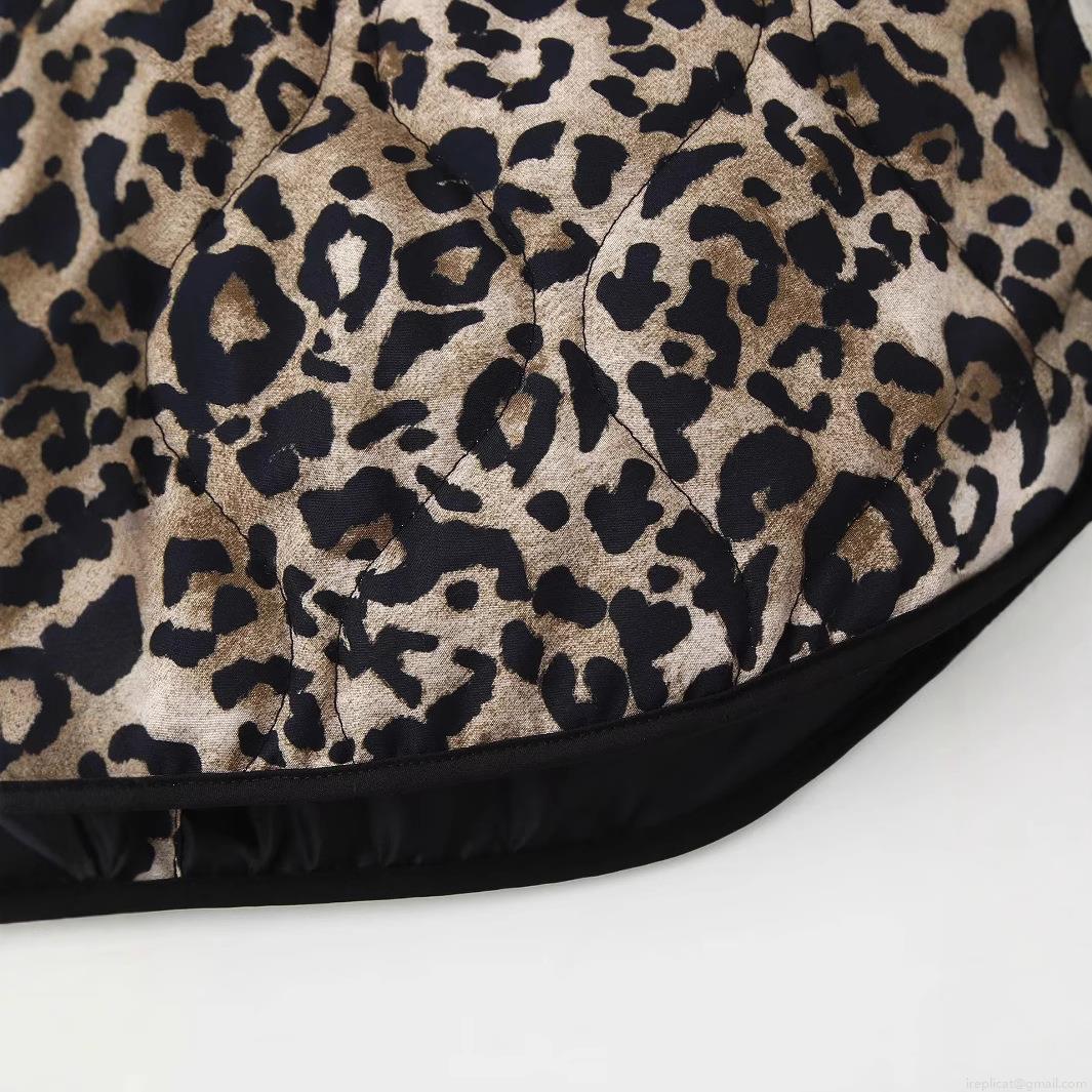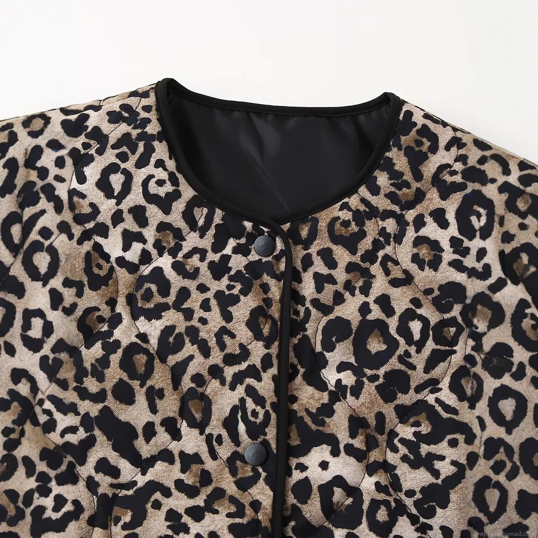 Women's Leopard Print Quilted Jacket Round Neck Single-Breasted Long Sleeve Lightweight Puffer Coat Autumn Winter Outerwear Chic Modern Fashion