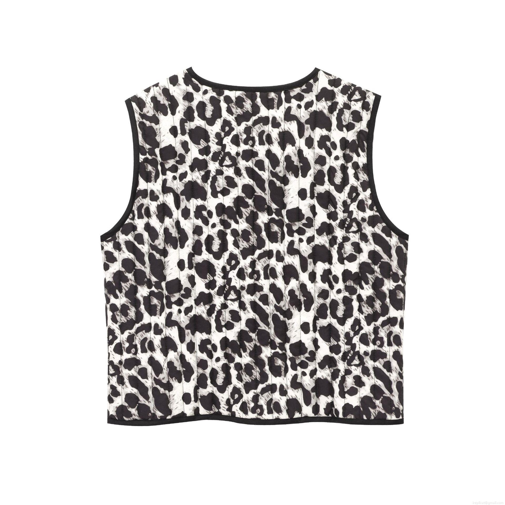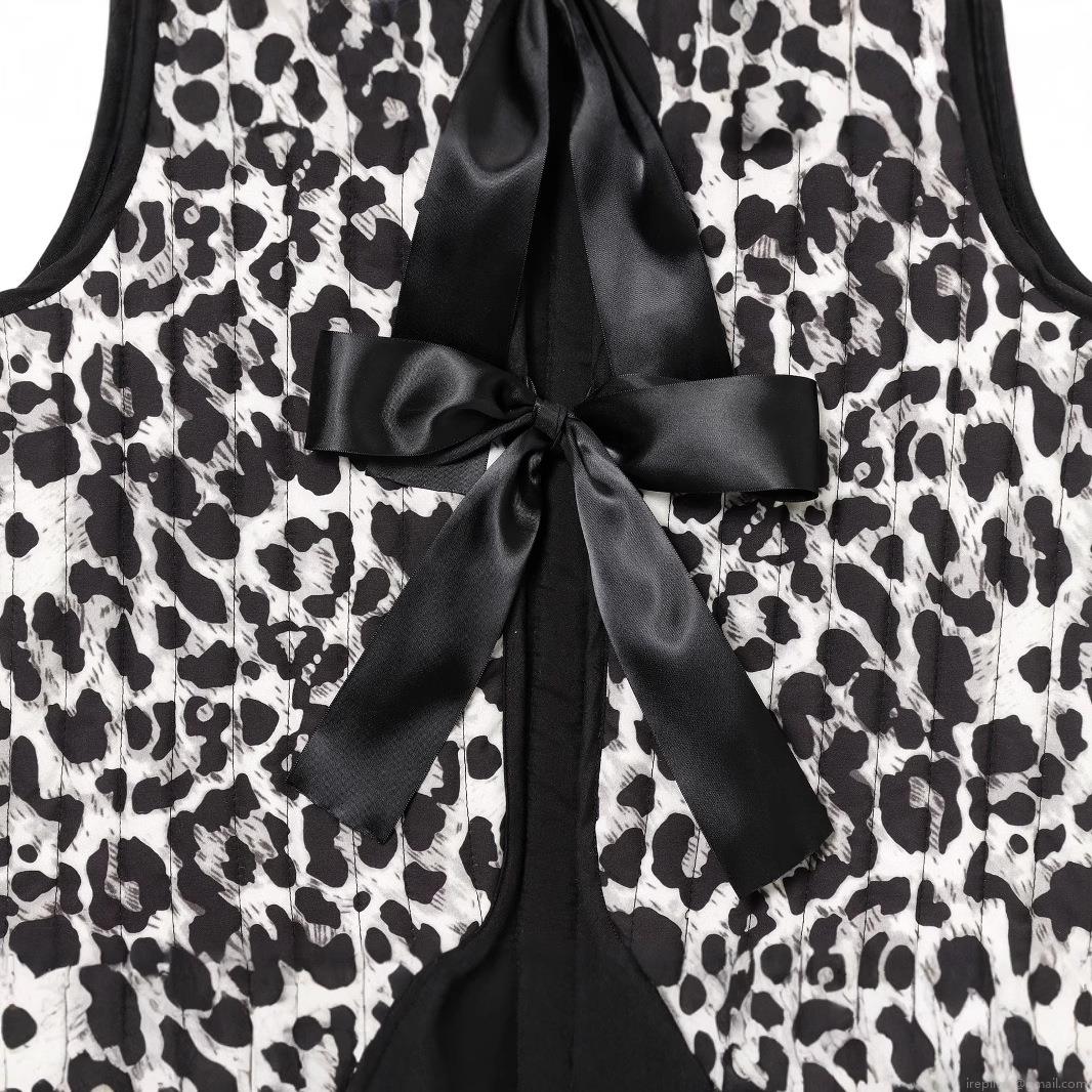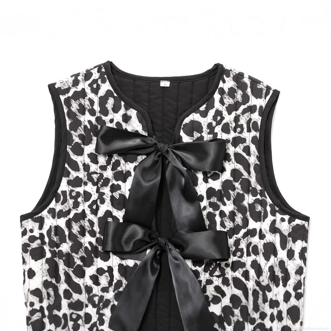 Women's Leopard Print Quilted Vest With Black Satin Bow Vintage Sleeveless Jacket Casual Fashion Streetwear Outerwear For Women