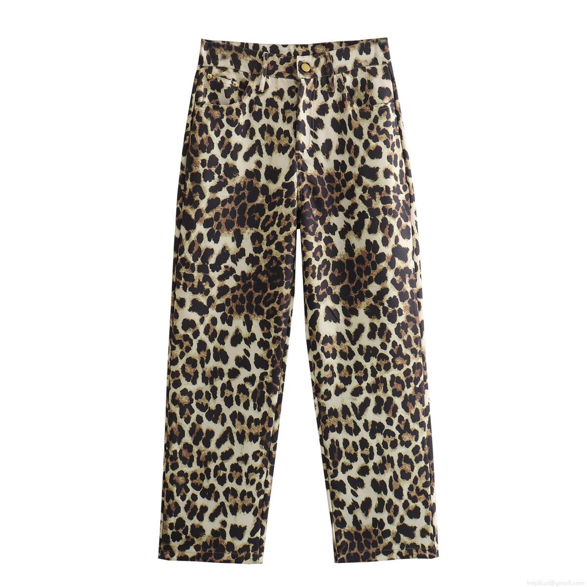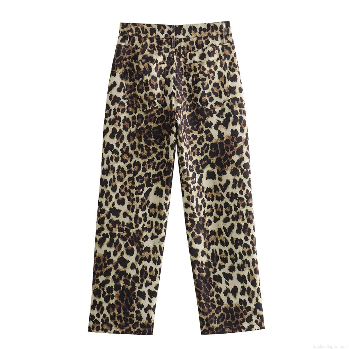 Leopard Print, Animal Print, Metal Buttons, High-waisted Design, Five-bag Design