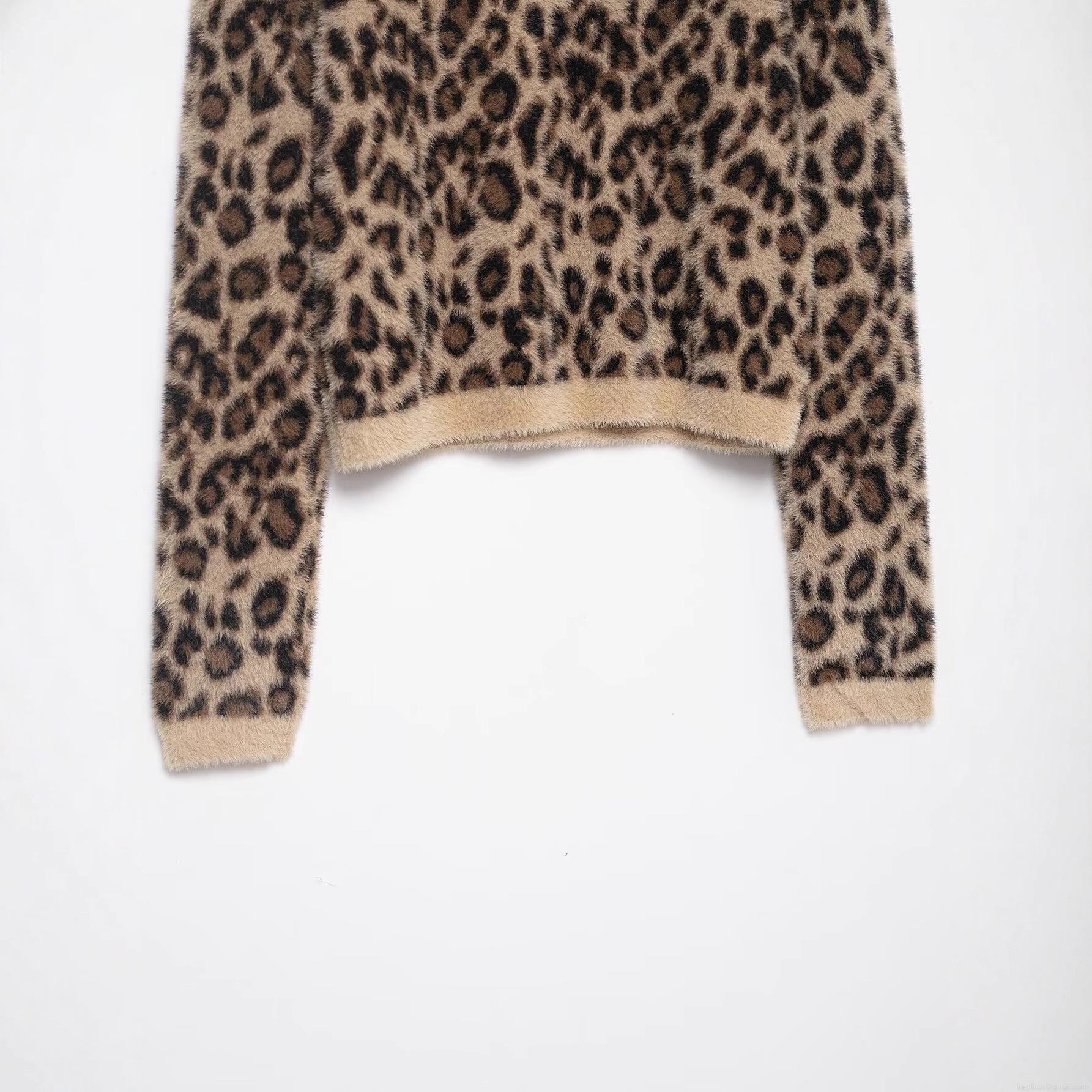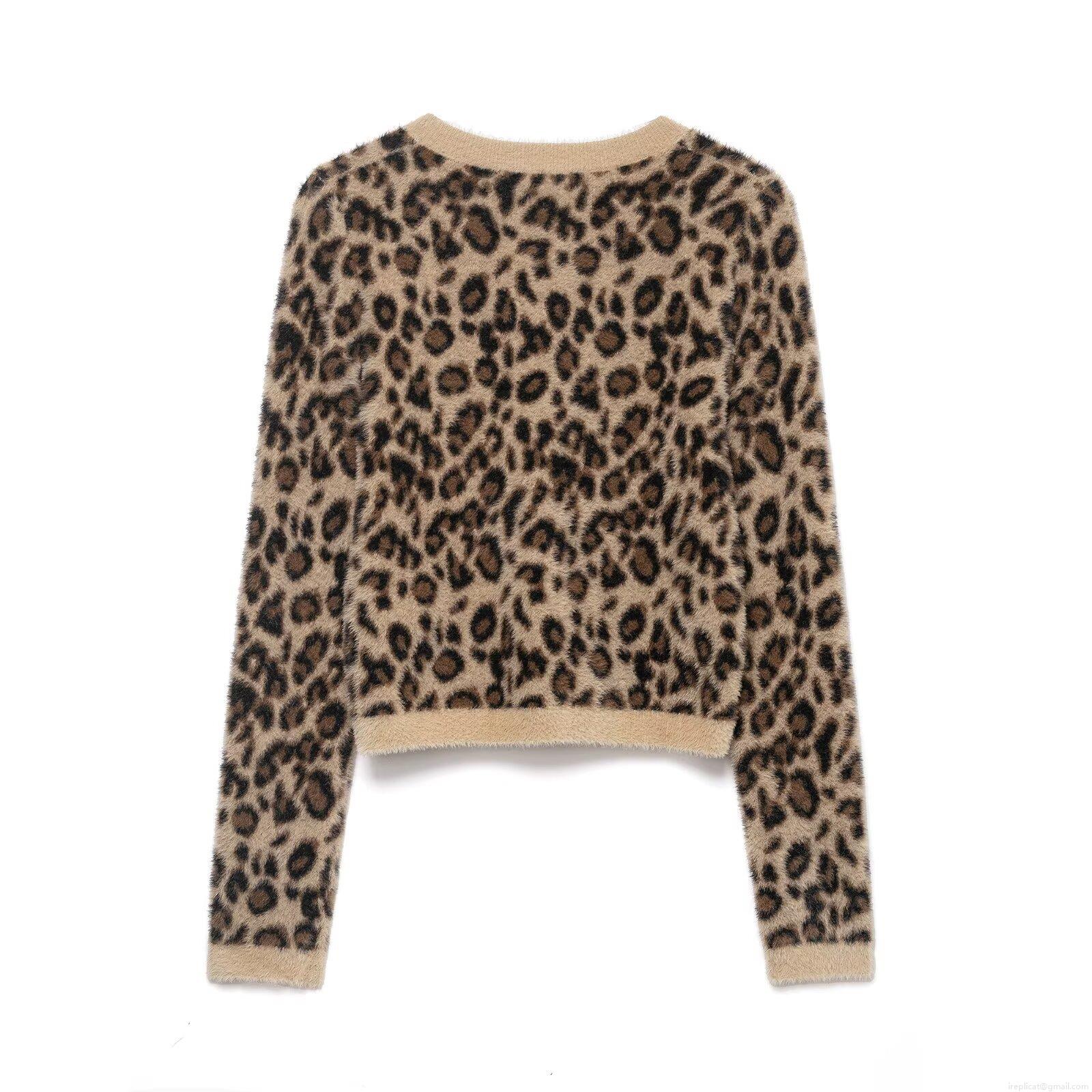 Women's Leopard Print Sweater Faux Mink Fur Polyester Knit Round Neck Long Sleeve Ribbed Cuff Casual Streetwear Autumn Winter Warm Pullover Top