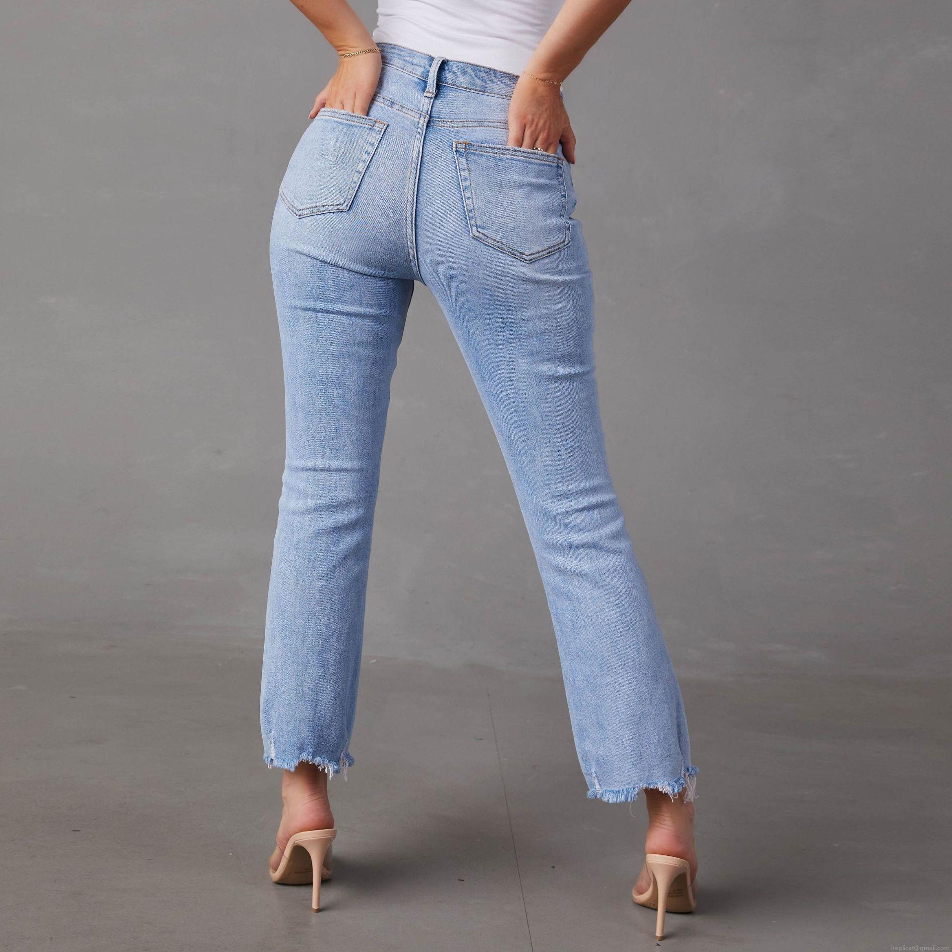 Women's High Waisted Ripped Straight Leg Jeans Distressed Frayed Hem...