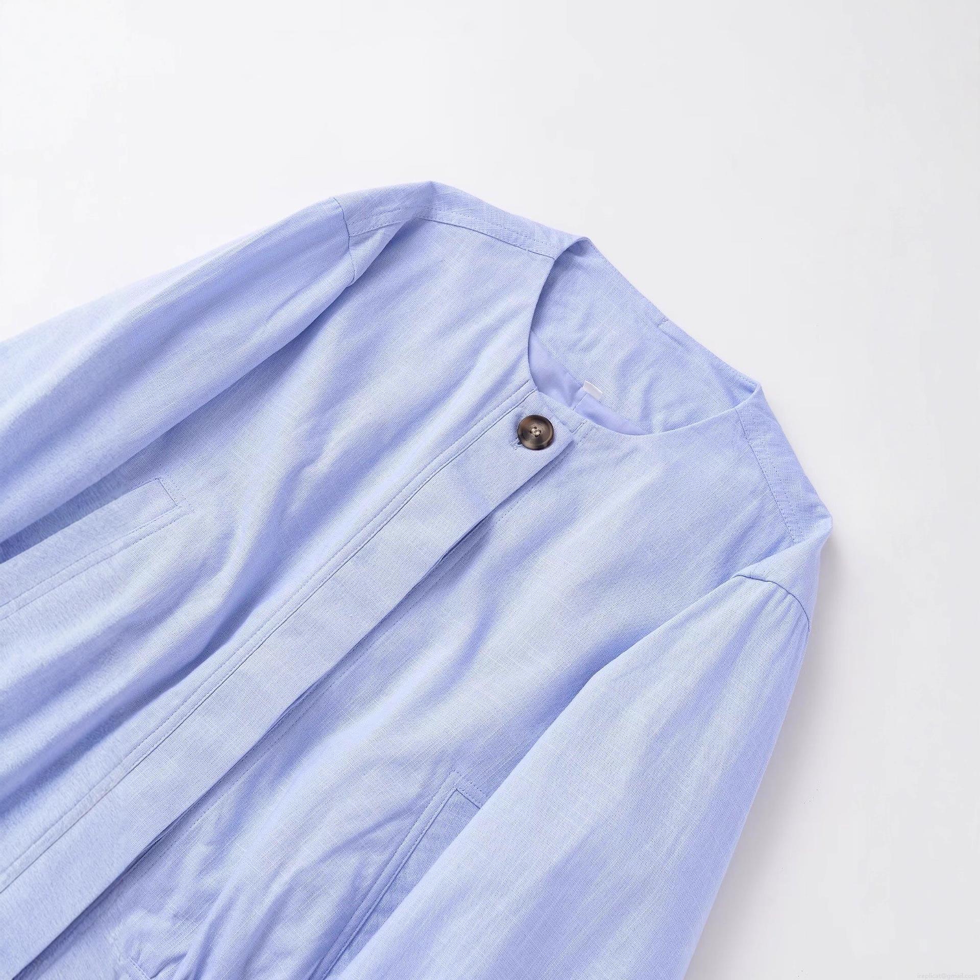 Solid Color, Button Decoration, Elastic Hem, Imitation Cotton And Linen Texture, Crew Neck Design