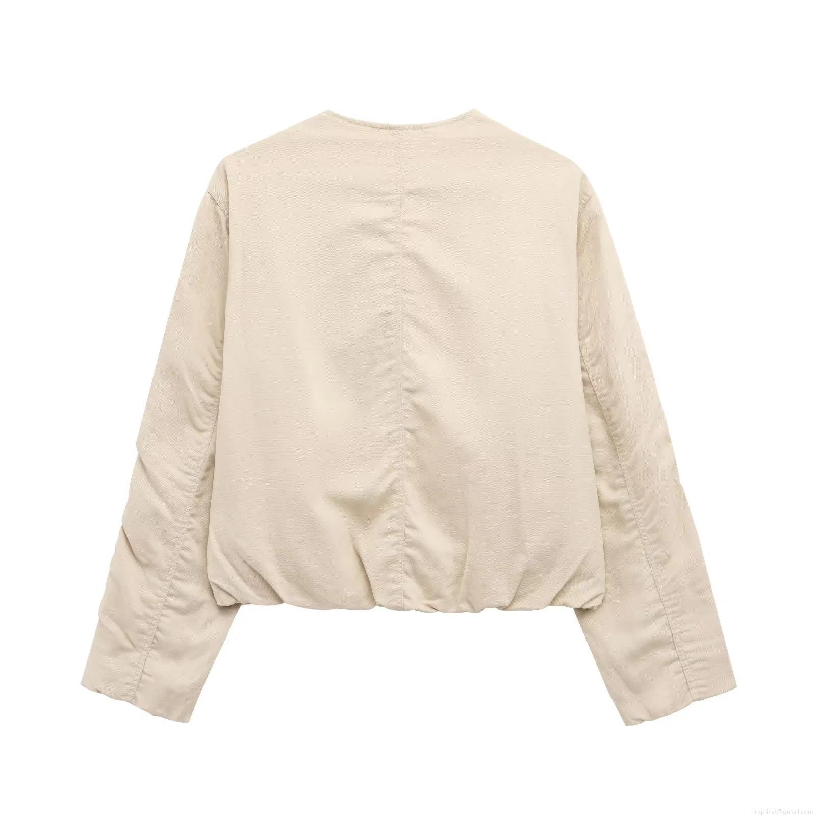 Women's Cropped Corduroy Jacket Long Sleeve Turn-down Collar Button...