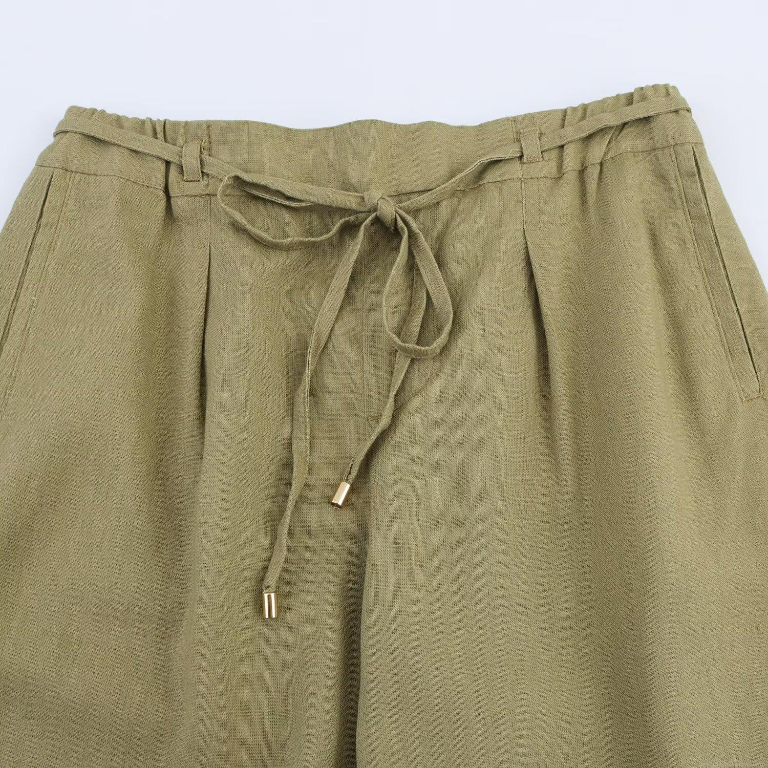 Women's Linen Wide Leg Pants High Waisted Drawstring Elastic Waist Casual Loose Breathable Solid Color Long Trousers With Pockets For Summer Daily Vacation