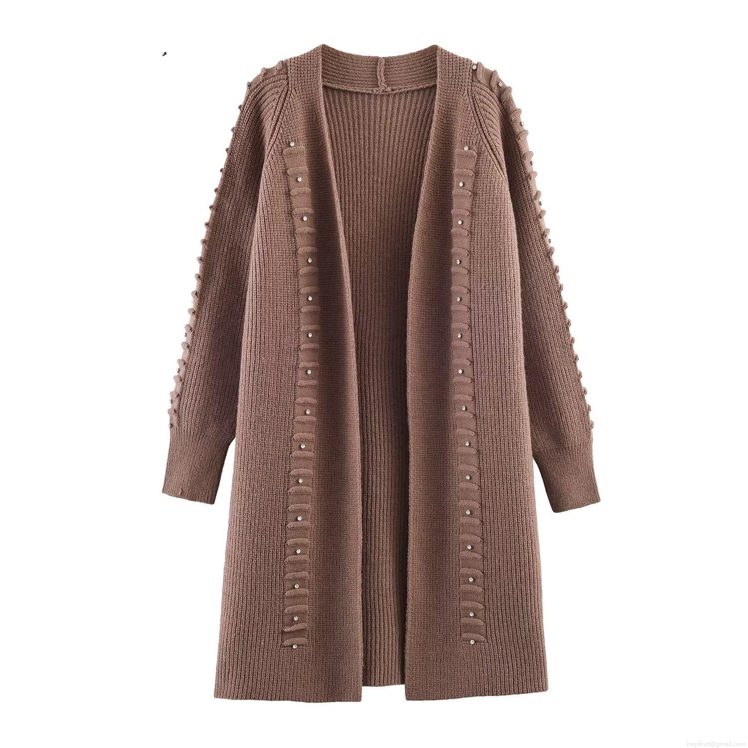 Women's Long Sleeve Knit Cardigan Sweater With Rivet Stud Decoration Open Front Elegant Fashion Solid Color Polyester Outerwear Coat For Women