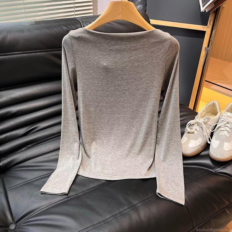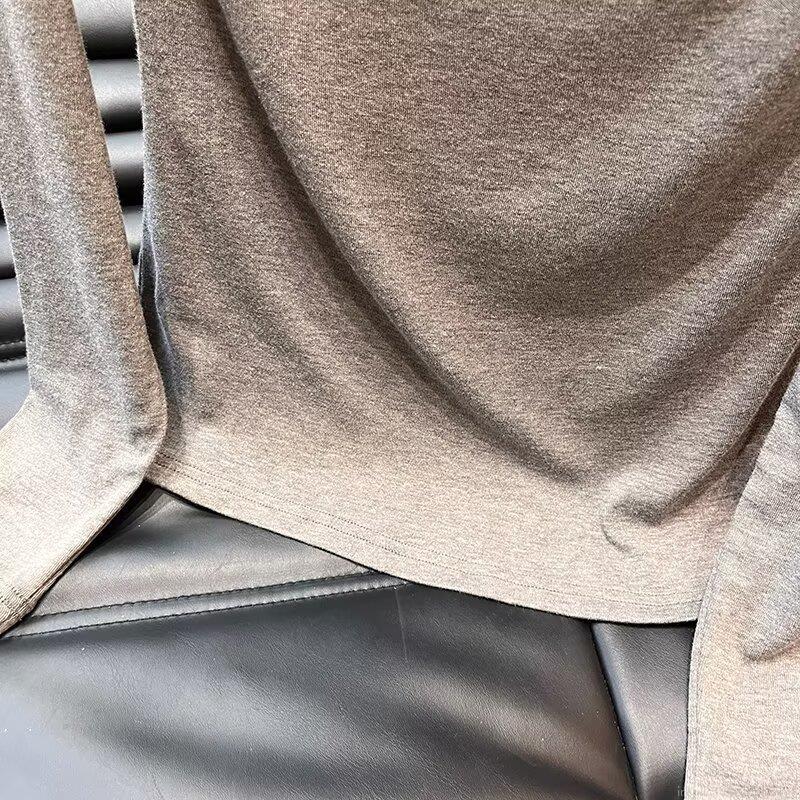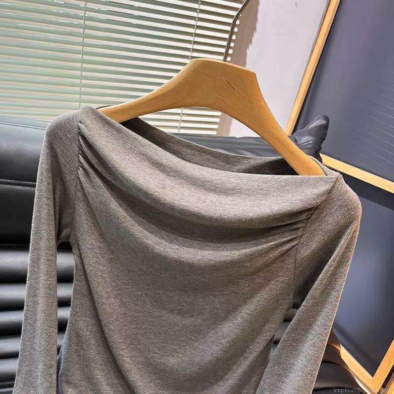 Women's Long Sleeve Off-the-Shoulder Ruched Knitted T-Shirt Slim Fit Solid Color Polyester Spandex Casual Top for Autumn Winter
