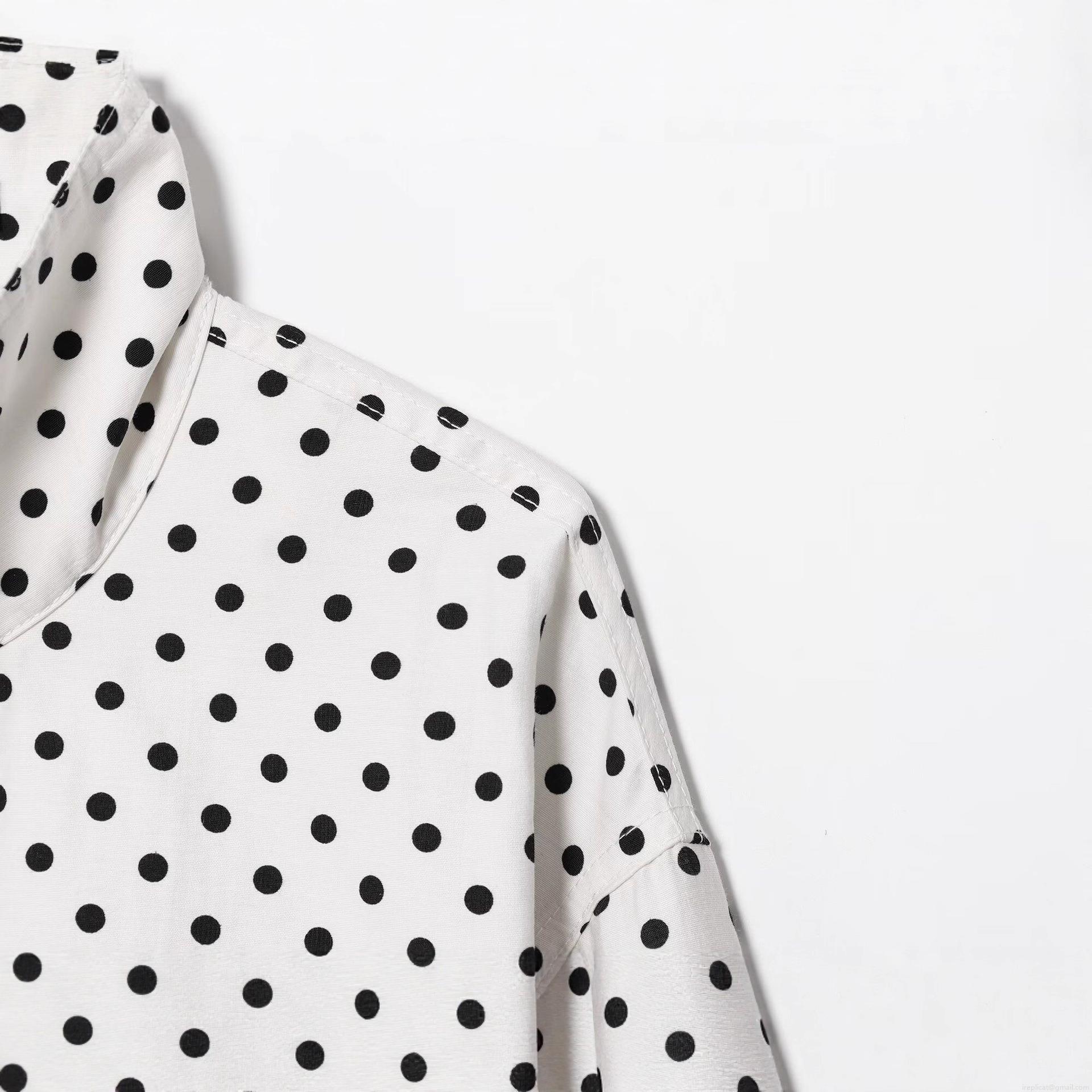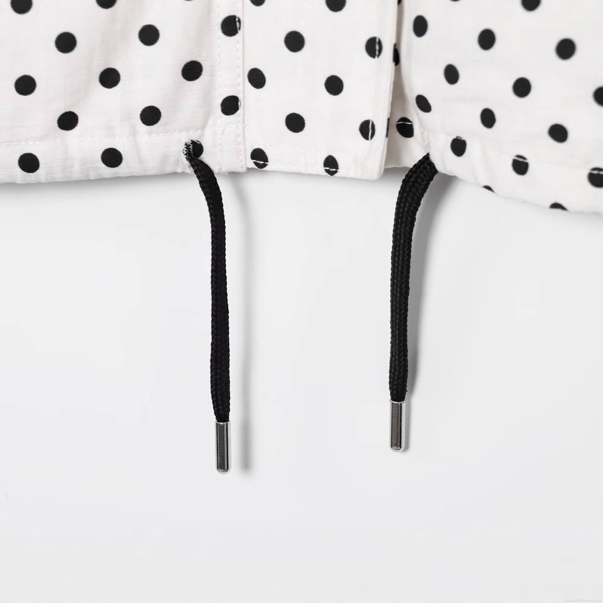 Women's Long Sleeve Polka Dot Stand Collar Jacket With Drawstring Hem Casual Loose Zip Up Outerwear Streetwear Fashion For Fall