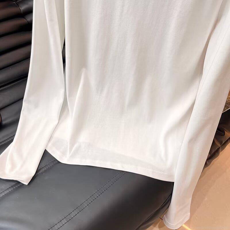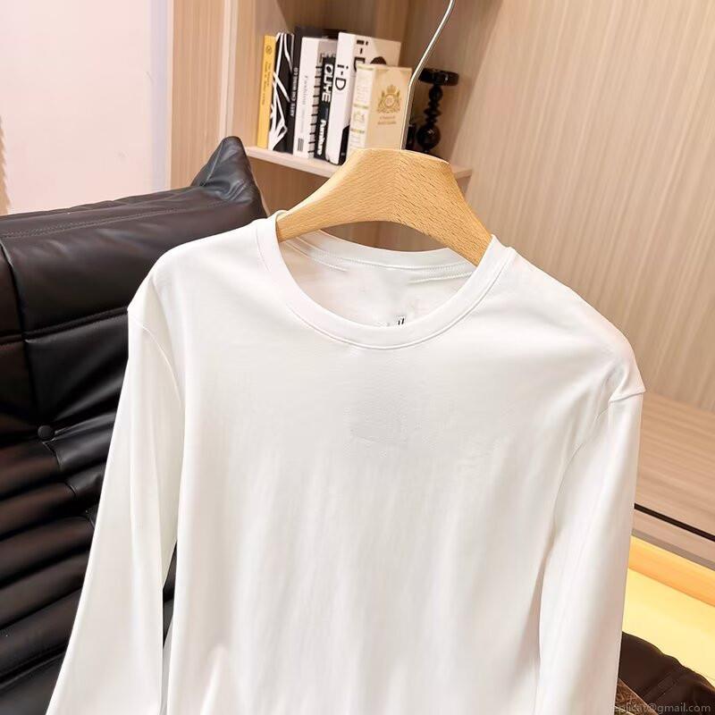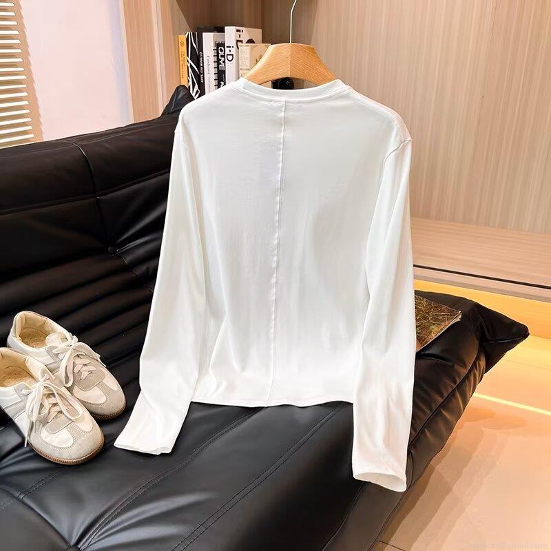 Women's Long Sleeve Round Neck T-Shirt Made Of 95% Cotton And 5% Spandex Minimalist Solid Color Casual Basic Top For Fall Daily Wear