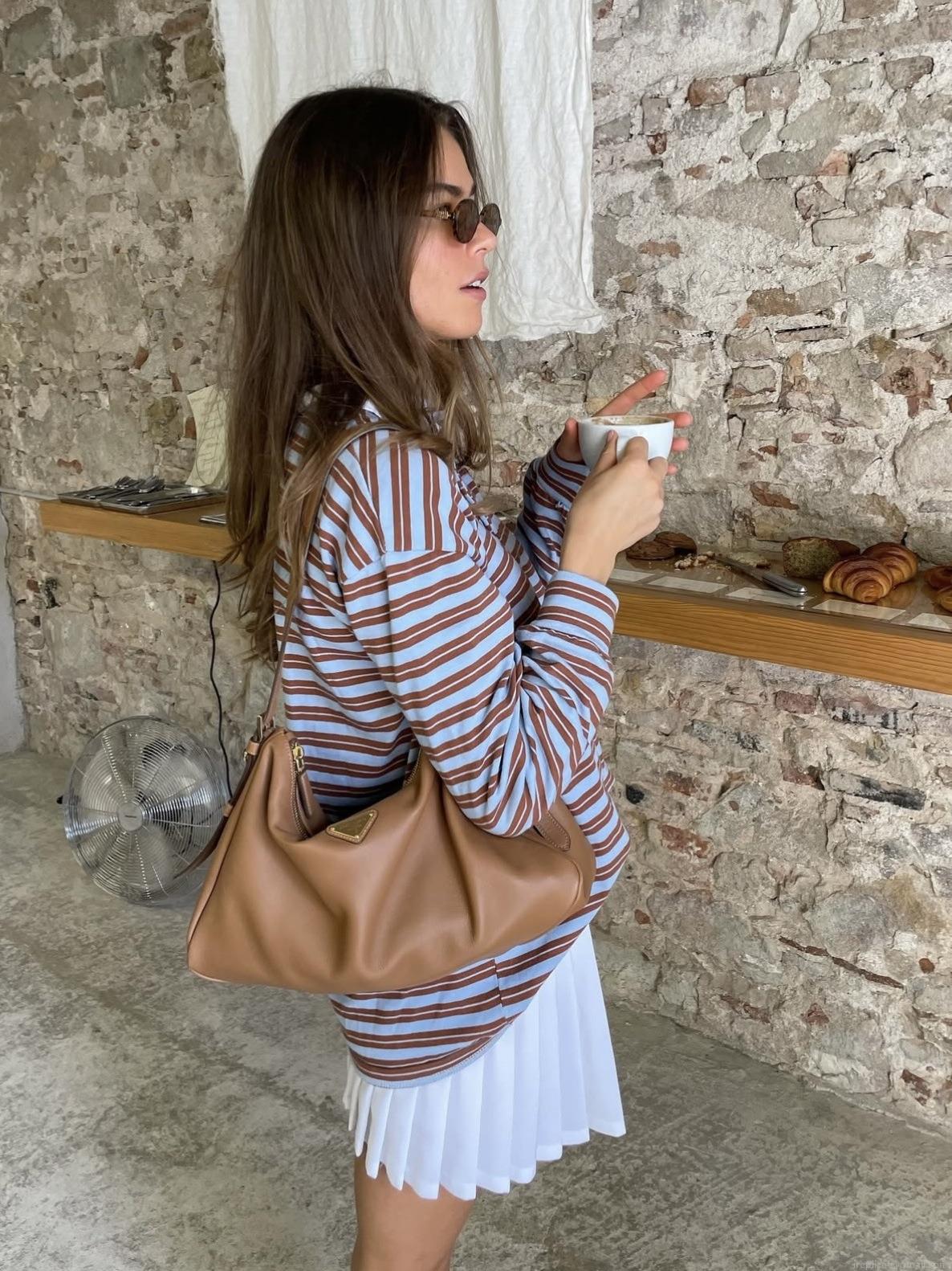 Women's American Vintage Striped Knit Polo Shirt Drop Shoulder Short...