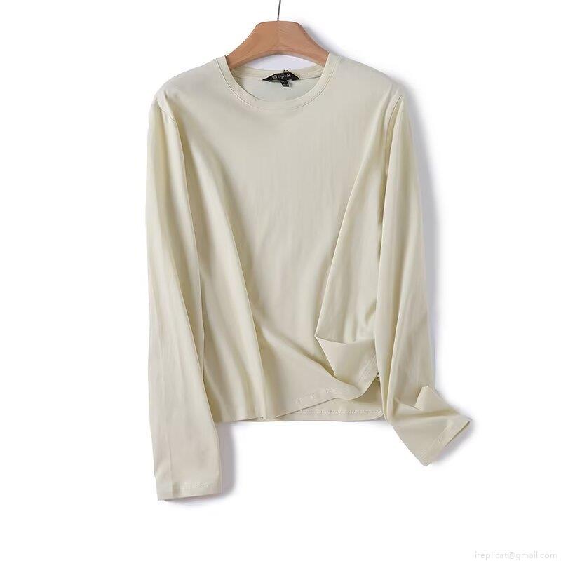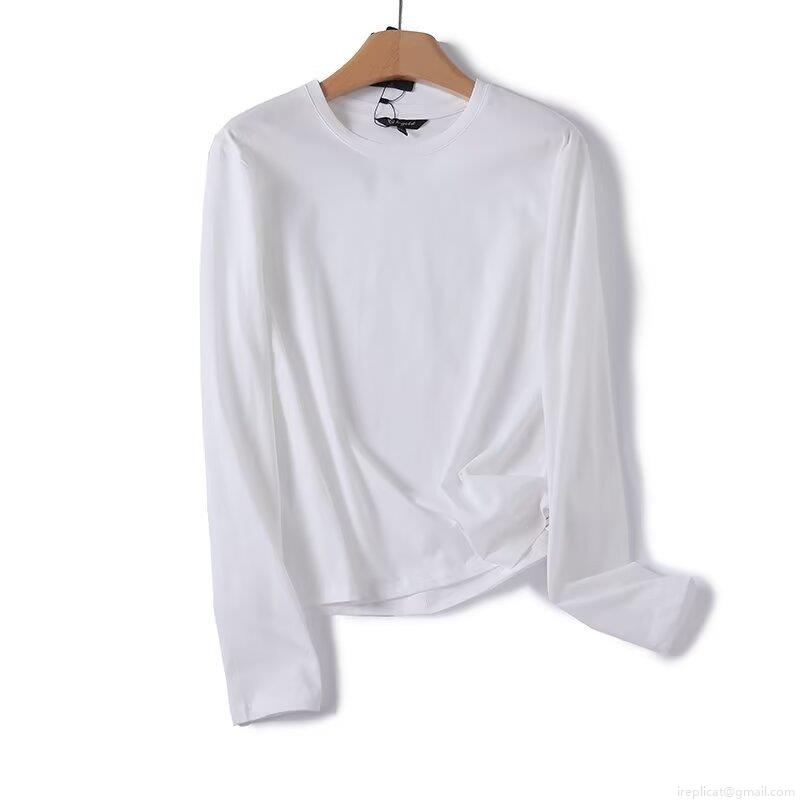 Women's Casual Long Sleeve T-Shirt Round Neck Pleated Decoration Grey...
