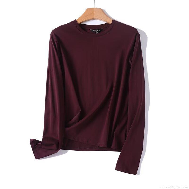 Women's Long Sleeve T-Shirt Basic Solid Color Round Neck Cotton Blend Base Layer Top Slim Fit Casual Streetwear Tee For Spring Autumn