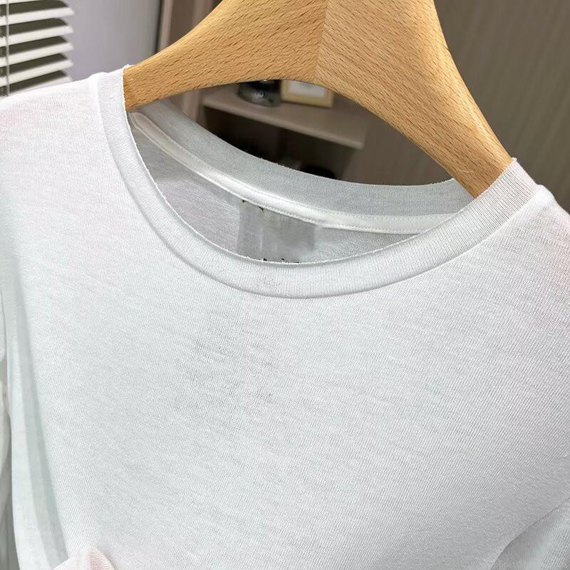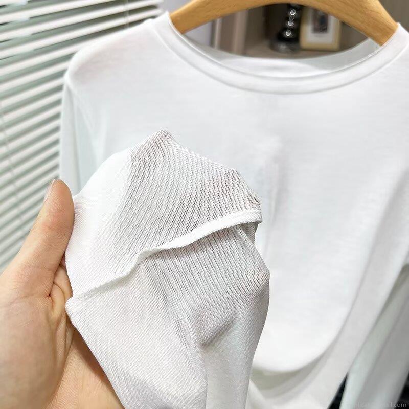 Women's Long Sleeve T-Shirt Cotton Spandex Blend Sheer Casual Slim Fit Round Neck Basic Tee Top For Daily Wear Autumn Fashion