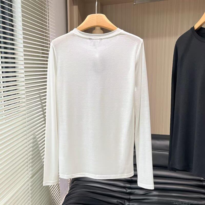 Women's Round Neck Long Sleeve Rib Knit T-Shirt With Belt...