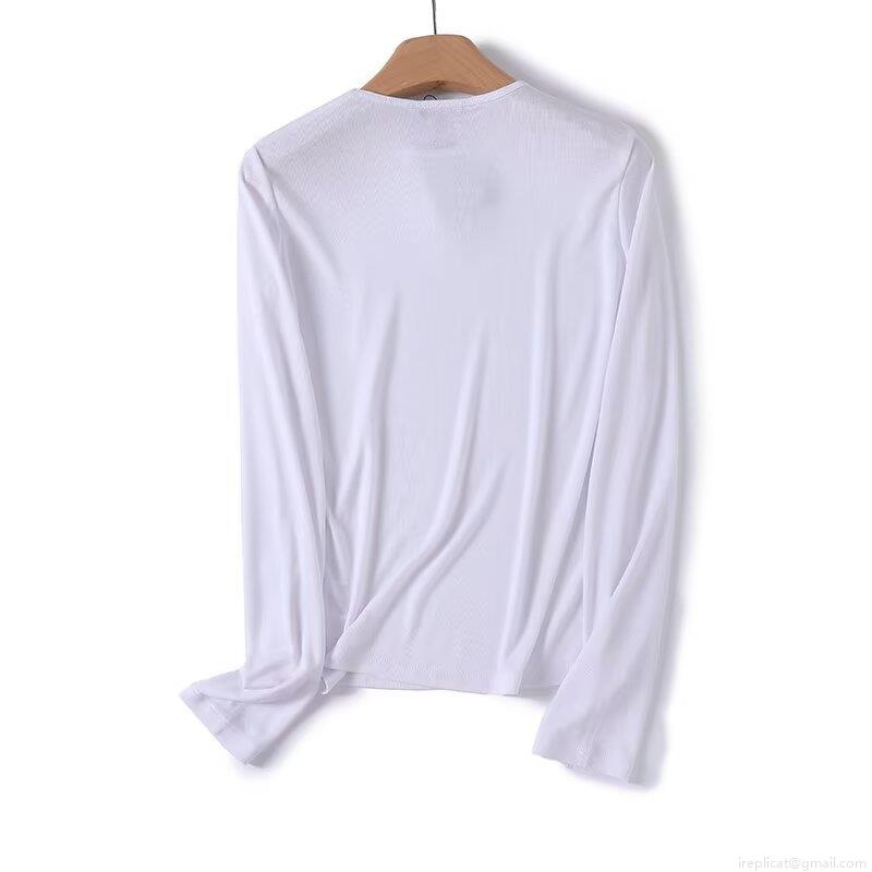 Women's Long Sleeve T-Shirt Solid Color Ribbed Knit Cotton Blend Round Neck Slim Fit Basic Top Casual Daily Pullover Soft Stretch Tee for Ladies