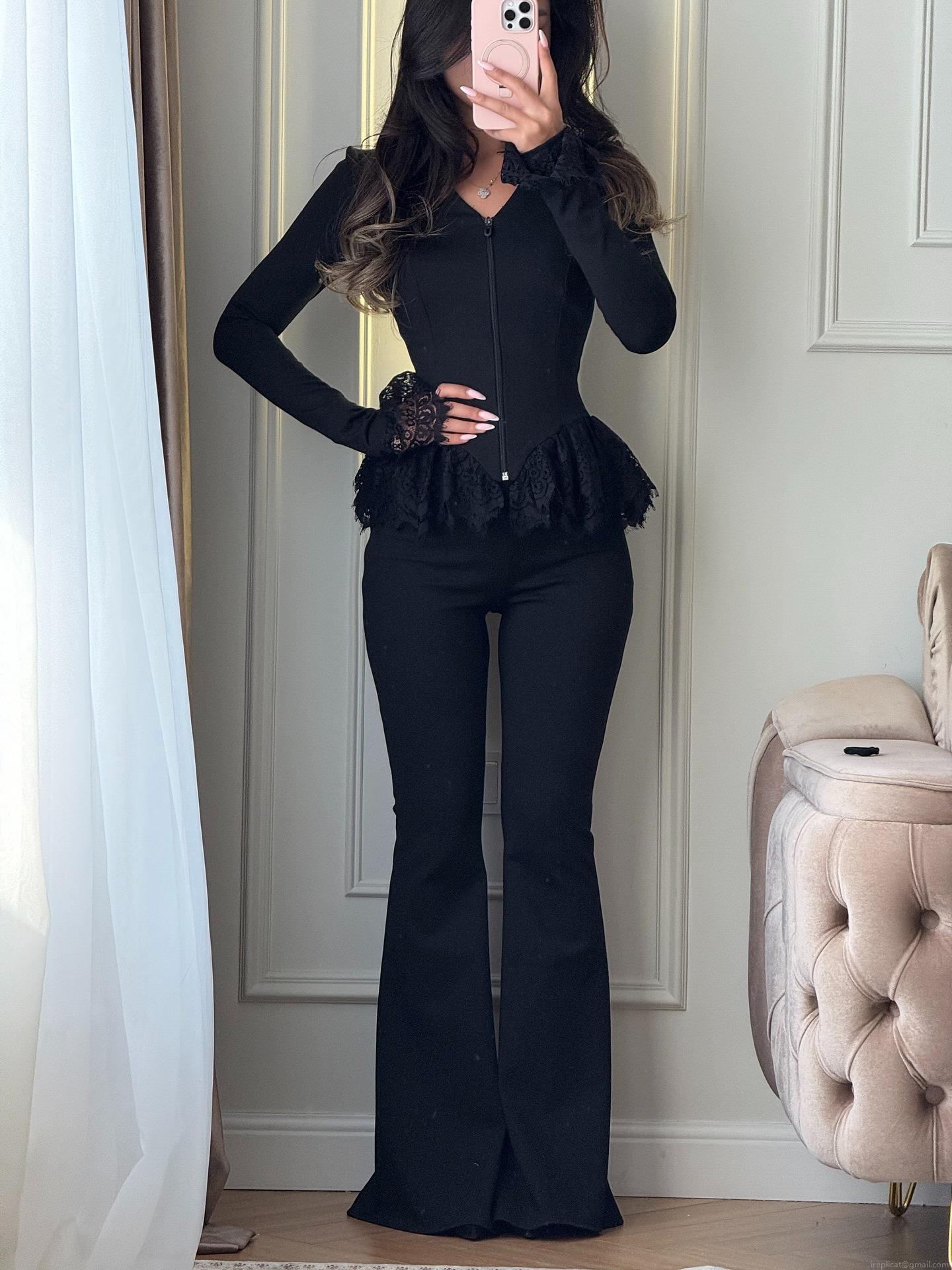 Color Blocking, Lace Patchwork, Floral Lace, Eyelash Lace, V-neck Zipper