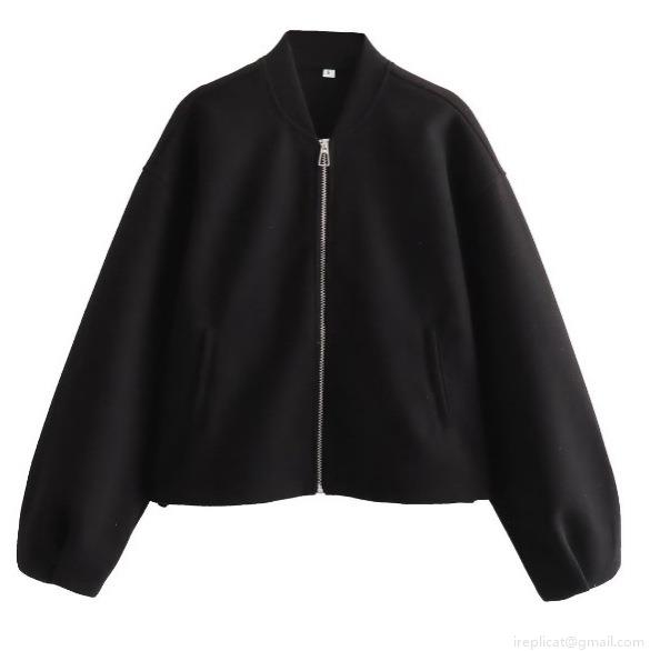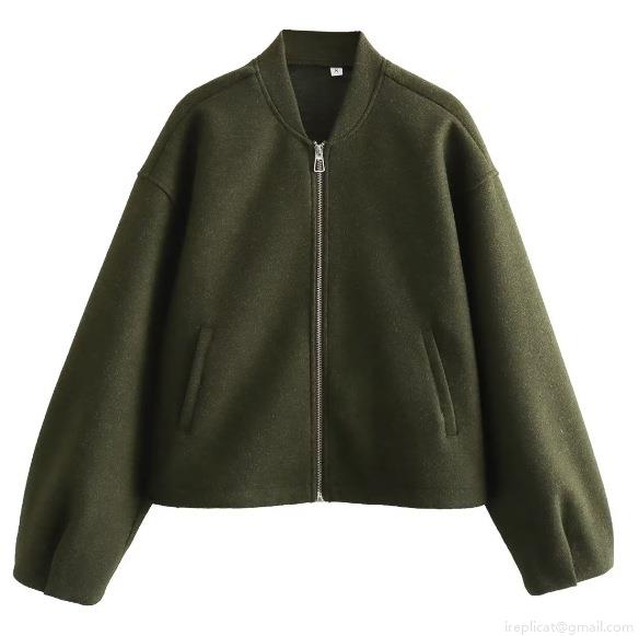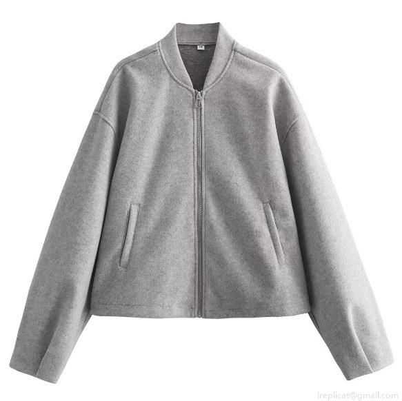 Women's Loose Bomber Jacket 100% Polyester Stand Collar Zipper Short Coat Casual Long Sleeve Outerwear For Daily Wear