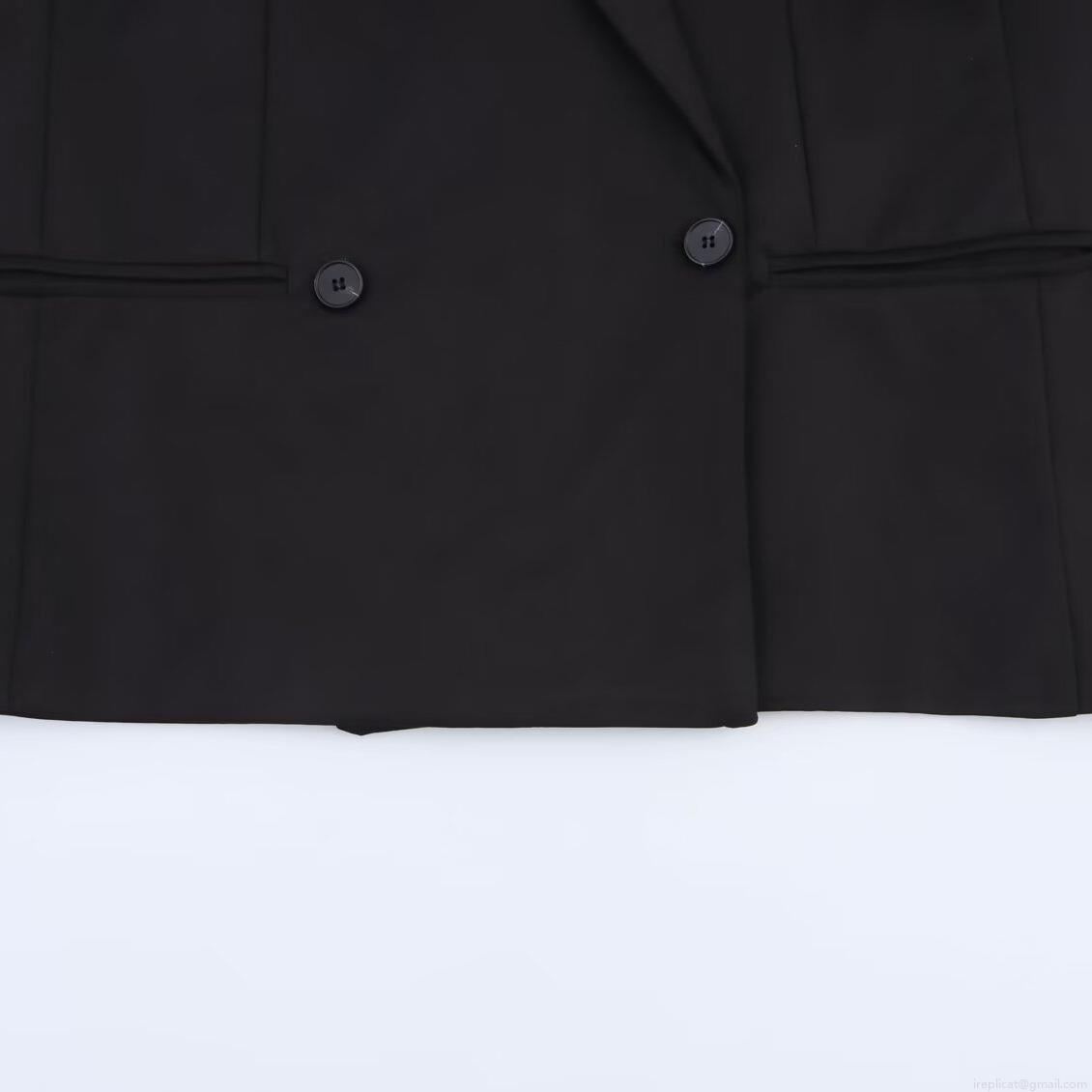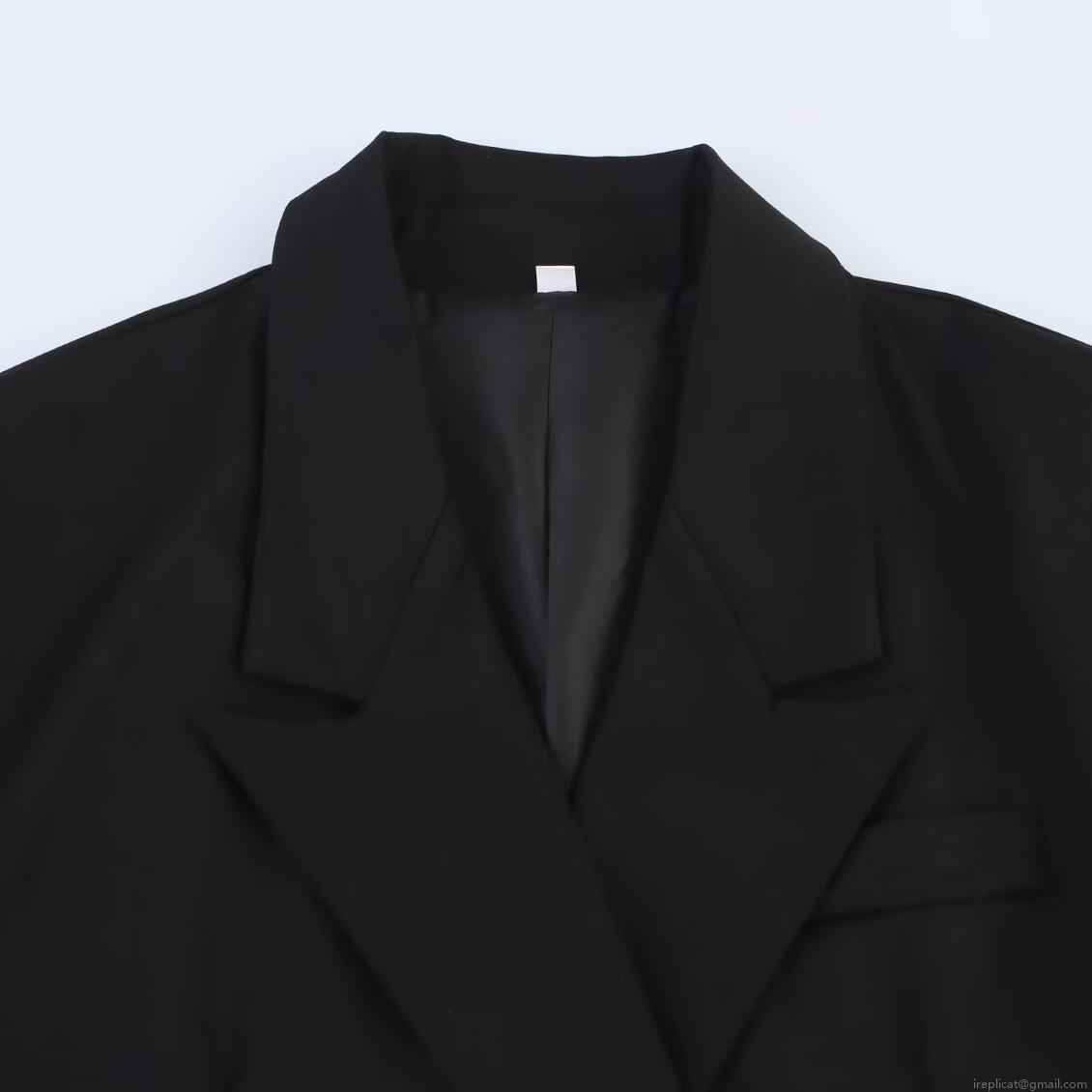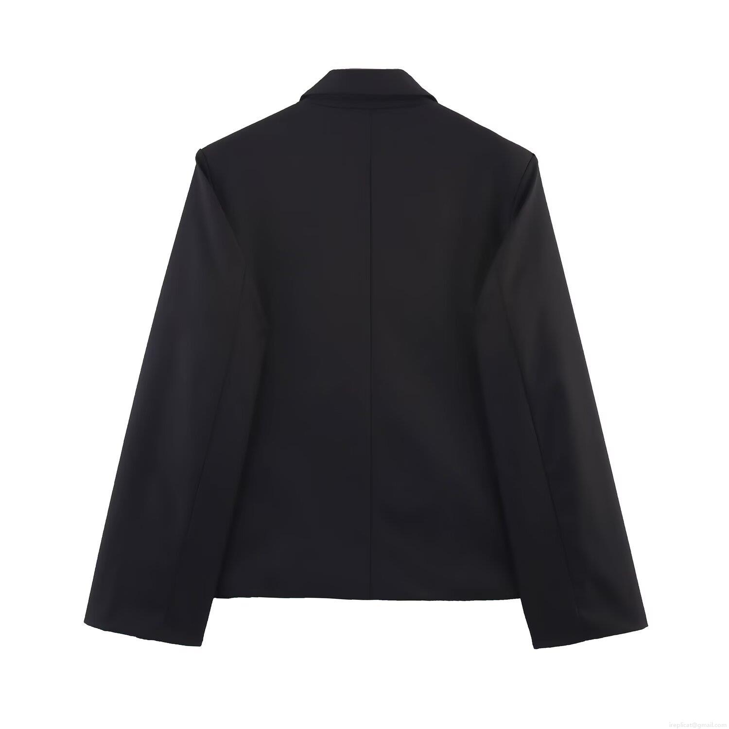Women's Loose Casual Black Blazer Double Breasted Woven Jacket Spring Autumn Elegant Commuter Short Suit Coat for Office Lady