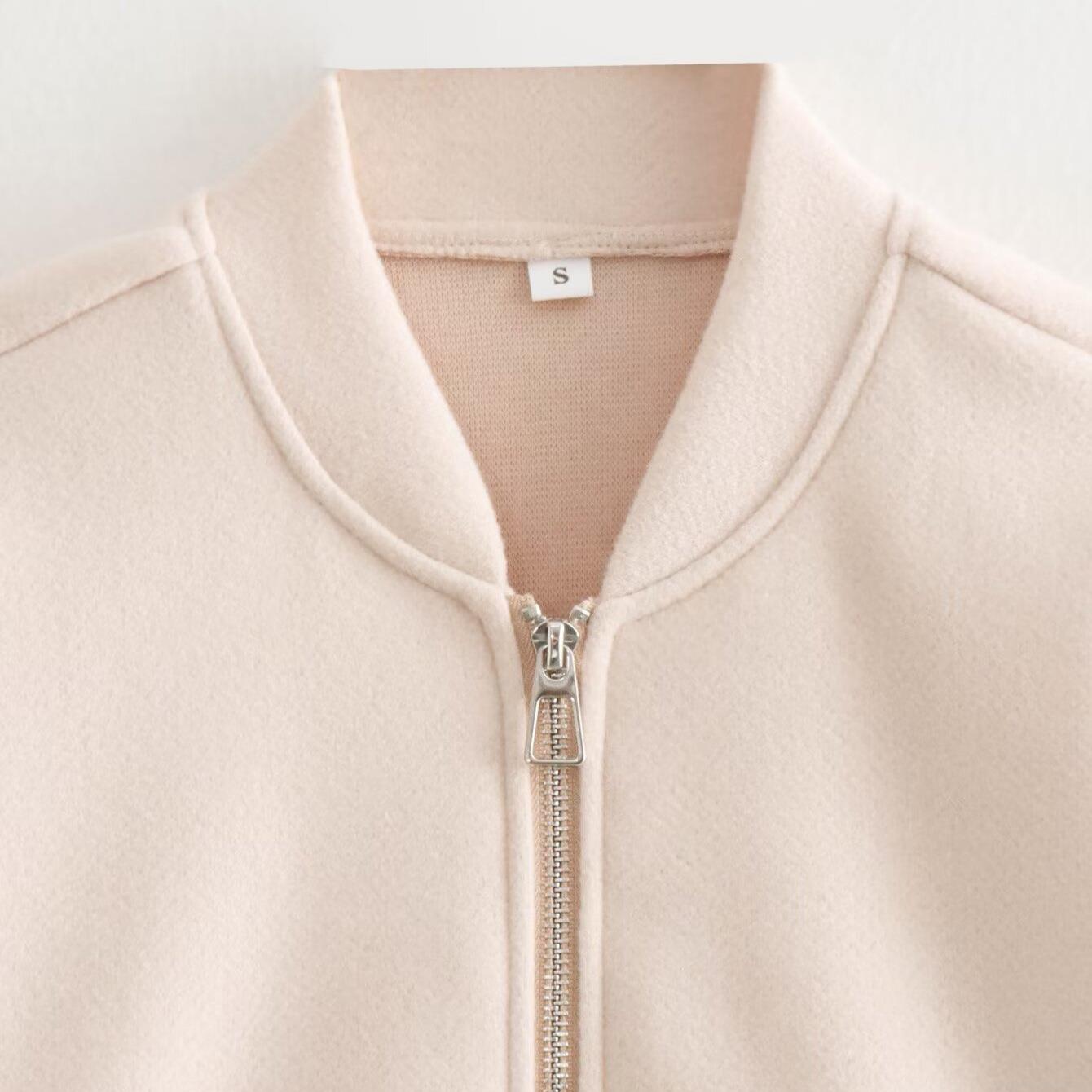 Women's Loose Casual Bomber Jacket Polyester Wool-like Warm Flight Jacket With Metal Zipper Drawstring Hem Long Sleeve Baseball Coat For Daily Travel Minimalist Outerwear