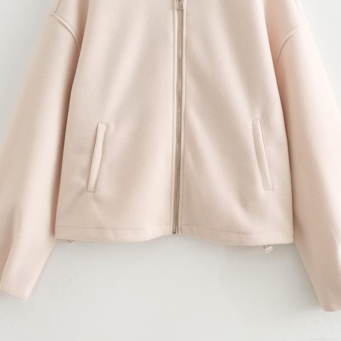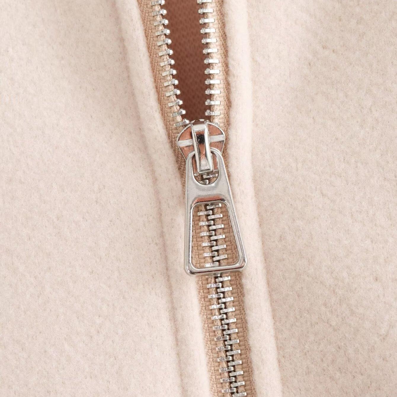 Solid Color, Metal Zipper, Ribbed Seam, Stand-up Collar Design, Dropped Shoulder Sleeves, Drawstring Hem