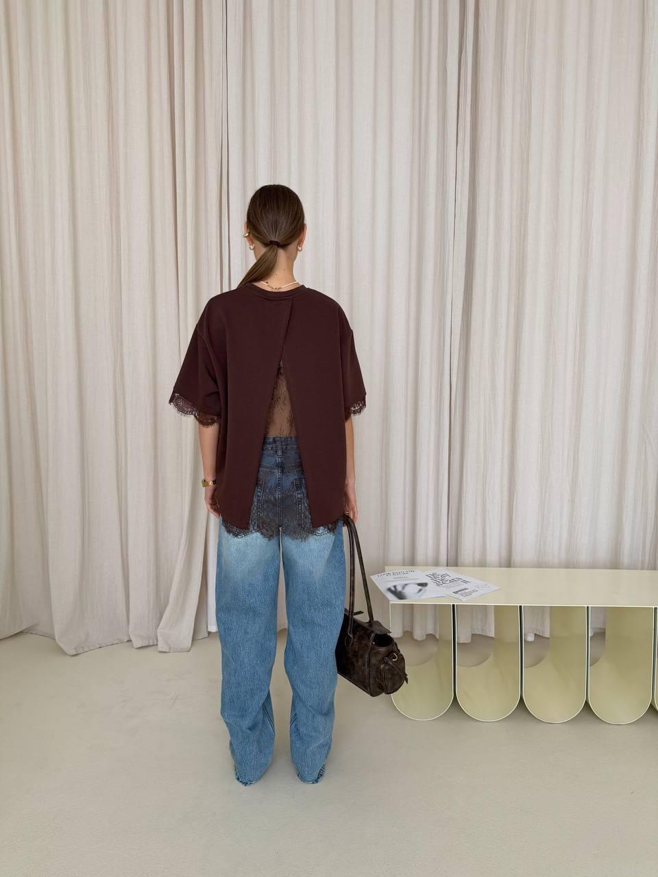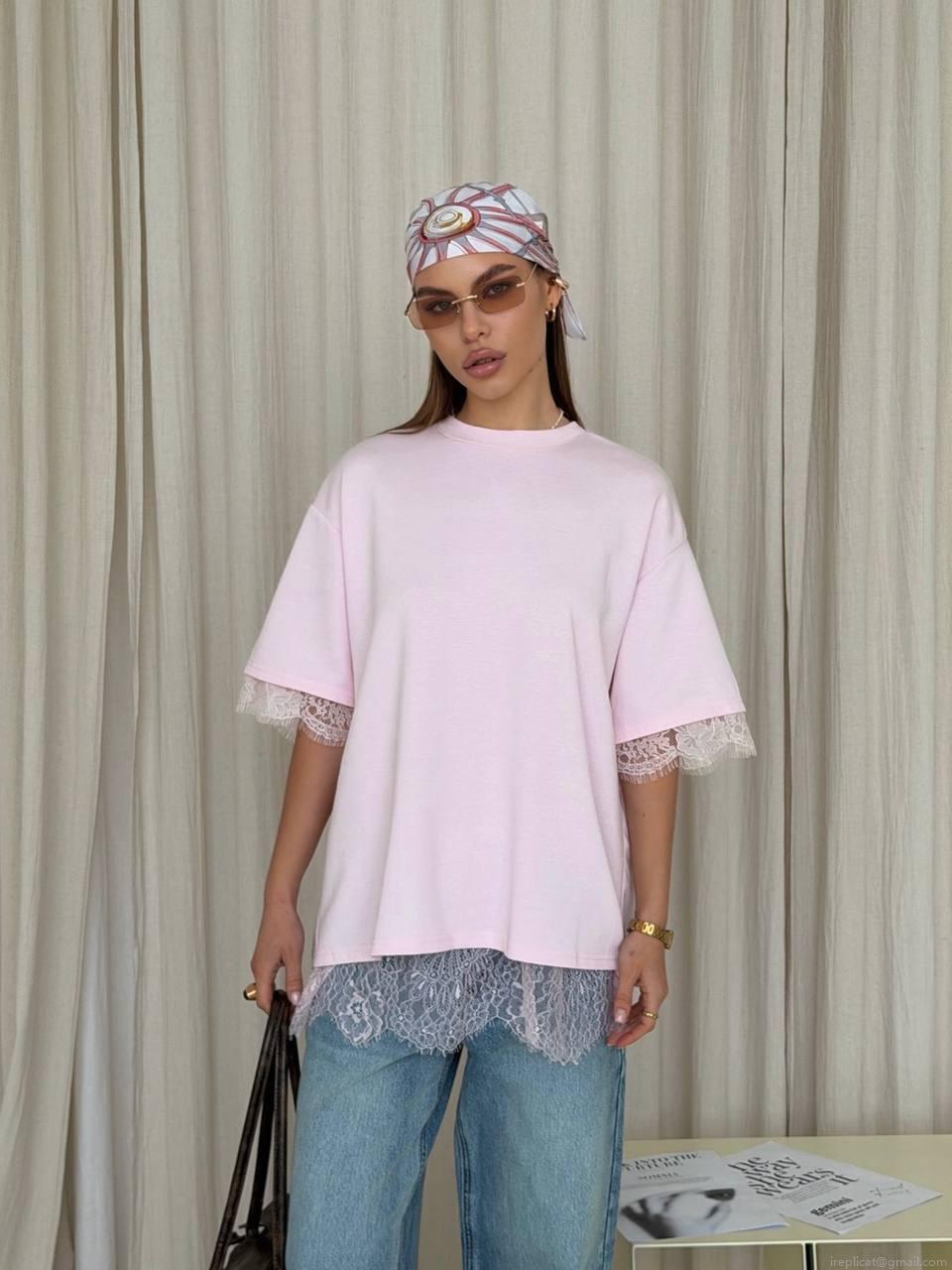 Women's Loose Casual Lace Patchwork T-Shirt Back Slit Round Neck Cotton Short Sleeve Top Summer Oversized Street Style Tee