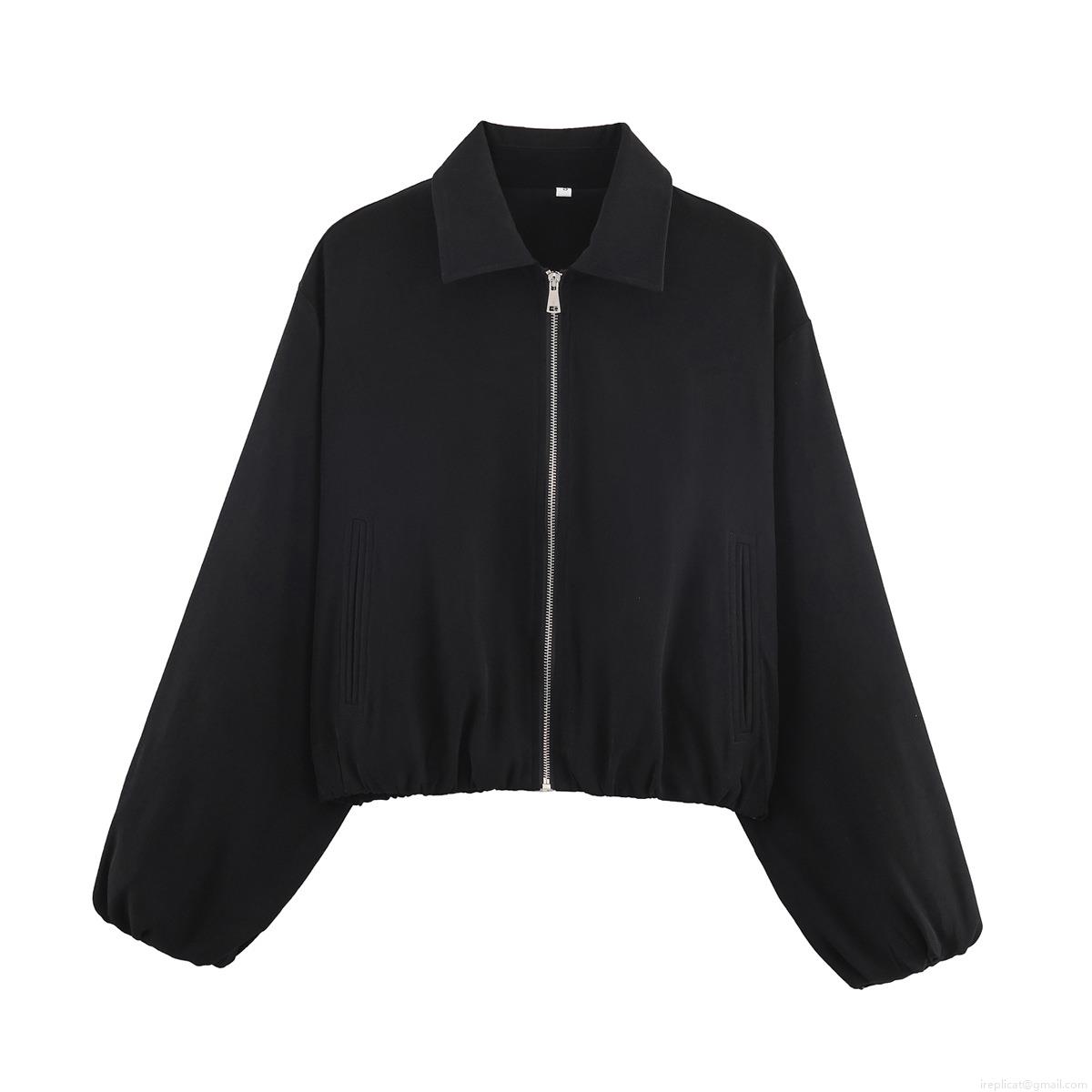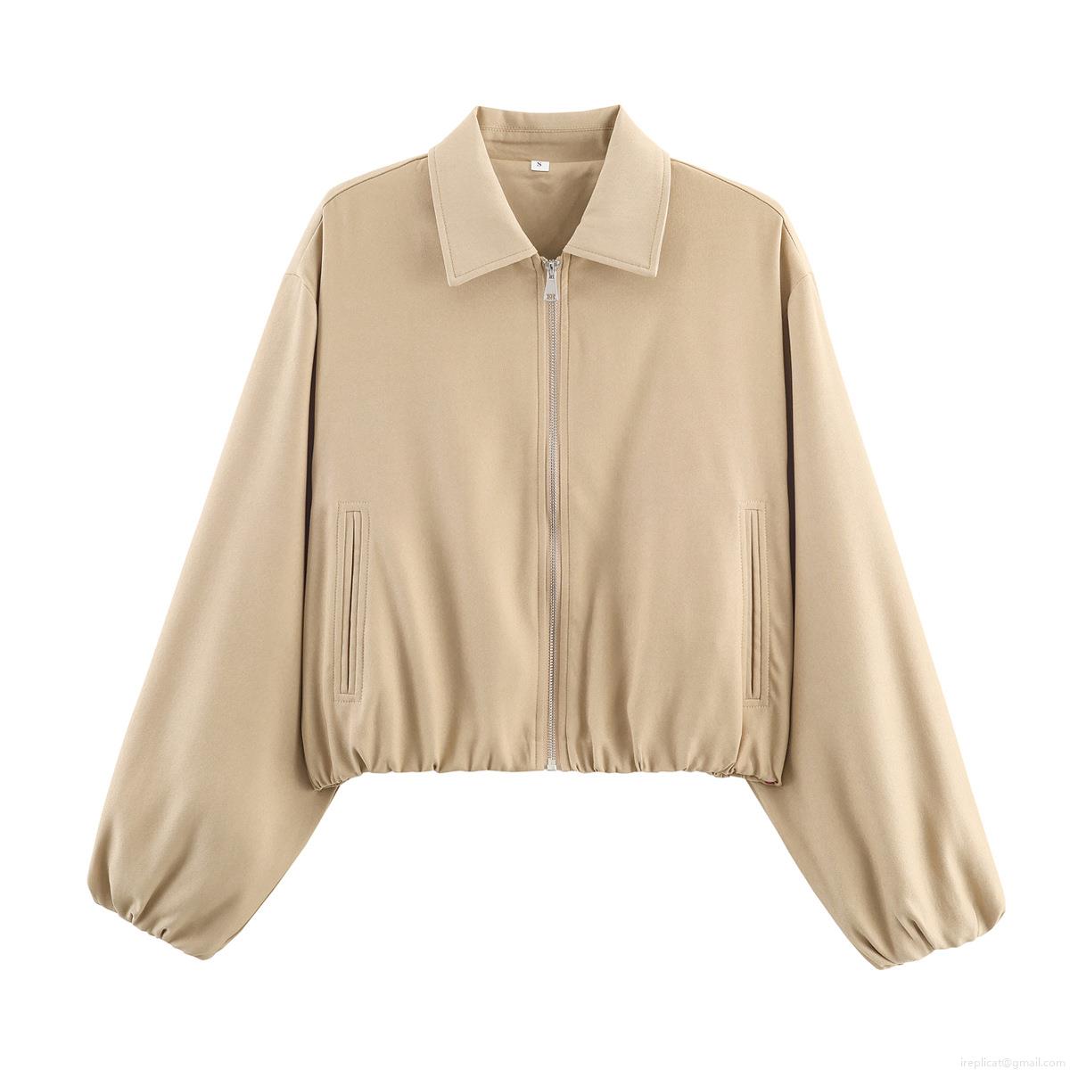 Women's Loose Casual Suede Jacket Fashion Solid Color Lapel Collar Long Sleeve Short Coat With Zipper And Pockets Elastic Hem Streetwear For Spring Autumn