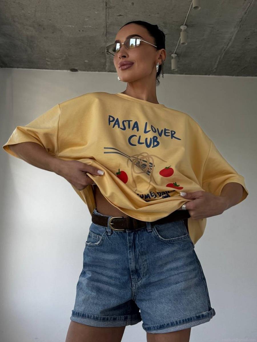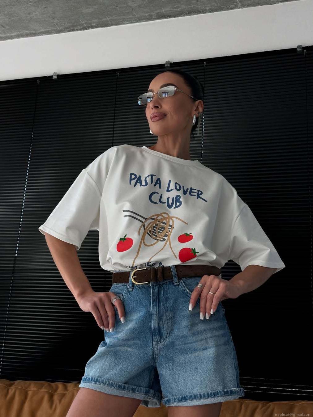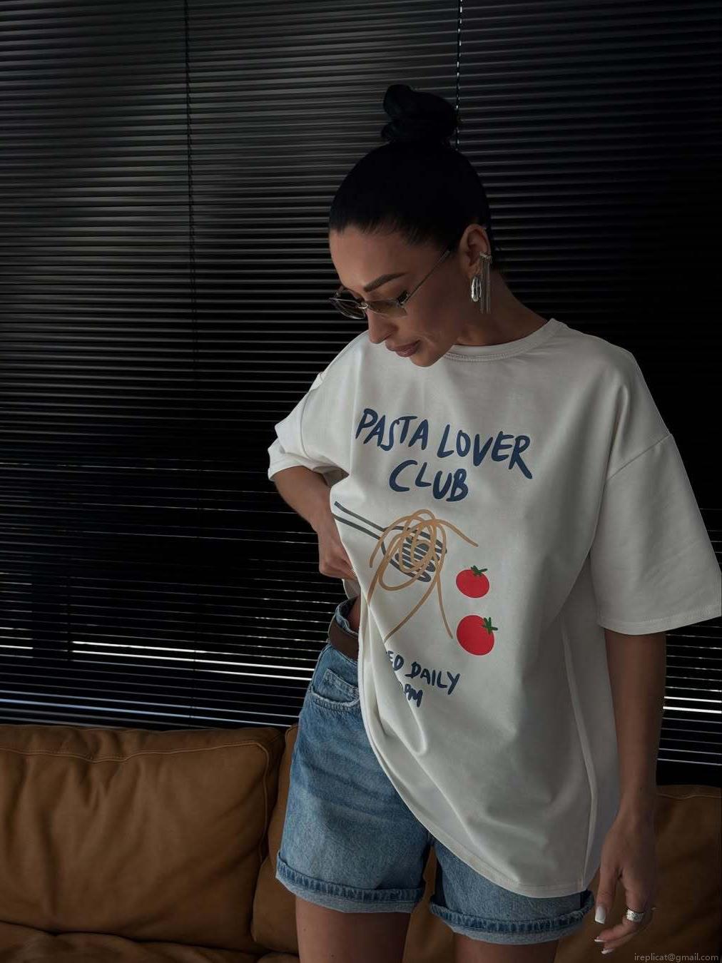 Women's Loose Cotton Short Sleeve T-Shirt Pasta Lover Club Graphic Print Casual Summer Crew Neck Tee Top