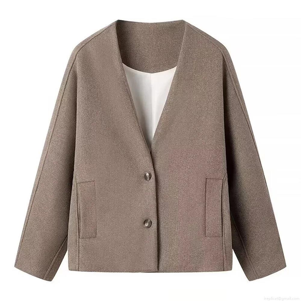 Women's Fashion Polyester Woolen Texture Jacket Short Lapel Double...