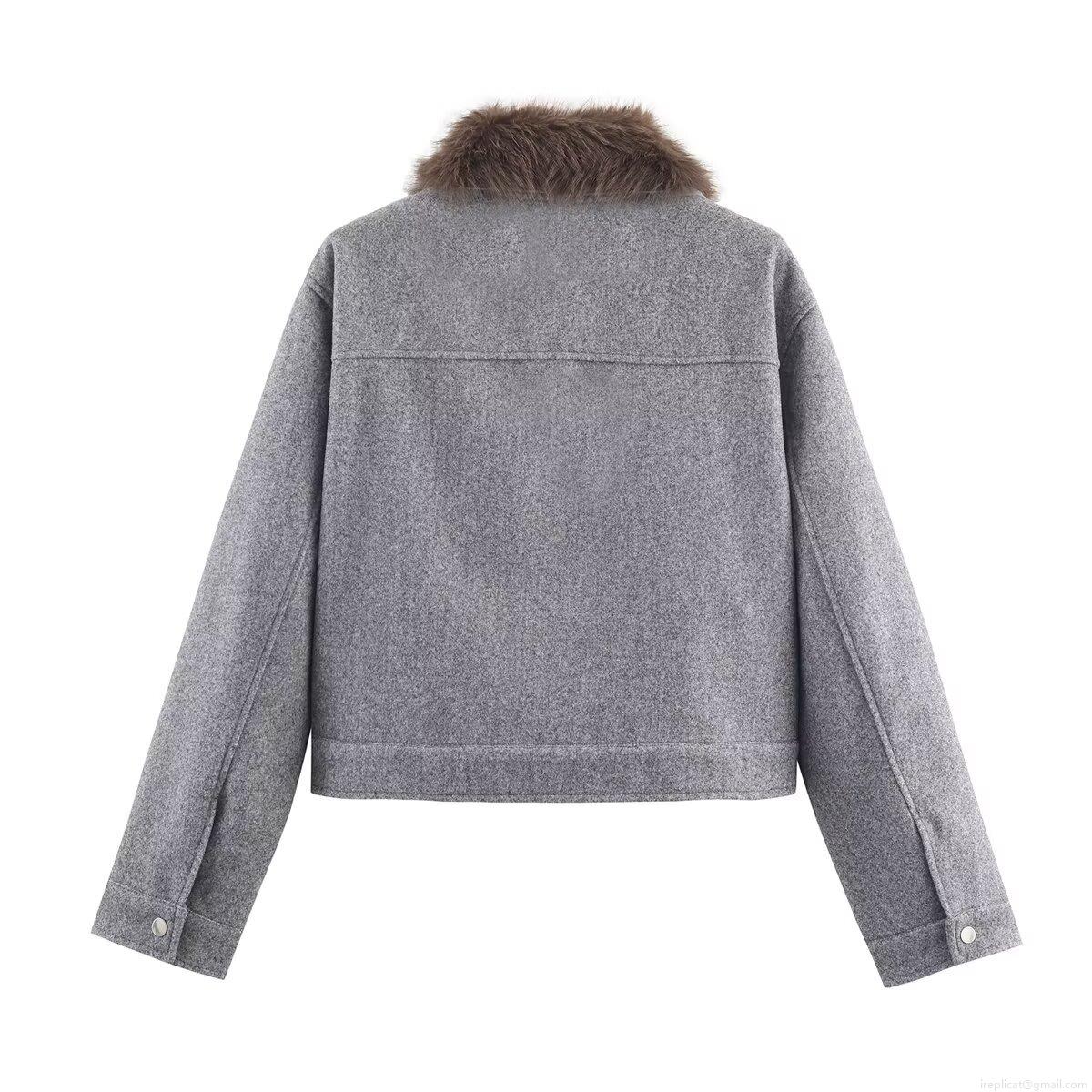 Women's Loose Faux Fur Collar Woolen Jacket Coat Winter Warm Single Breasted Lapel Outerwear With Pockets