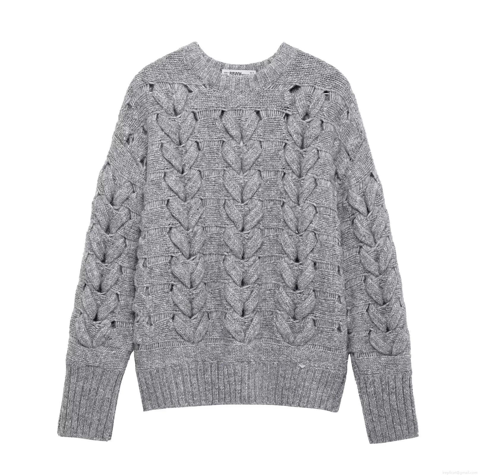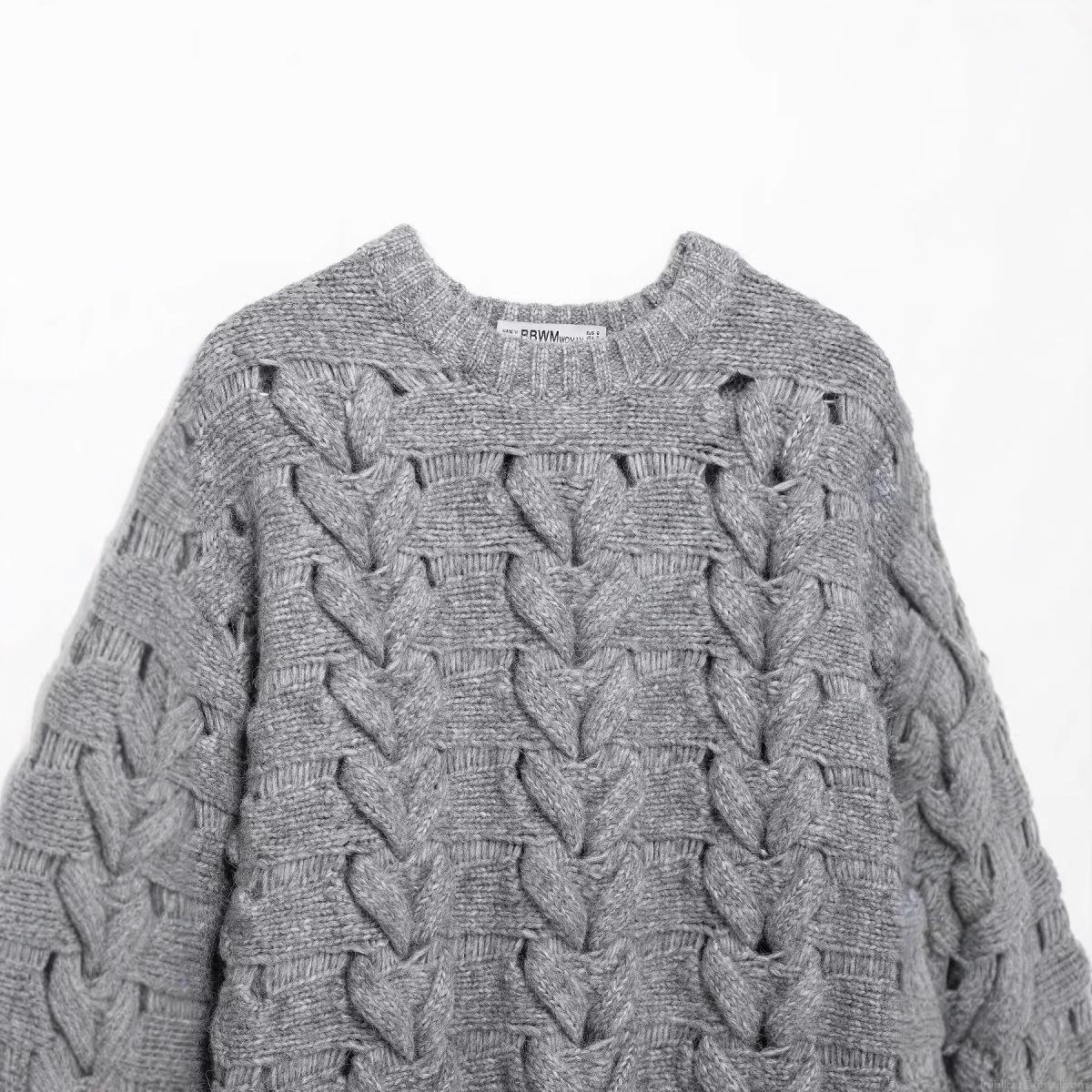 Women's Loose Heart Shaped Cable Knit Sweater Crew Neck Long Sleeve Chunky Pullover Casual Winter Warm Polyester Knitwear Top for Women Fashion Streetwear