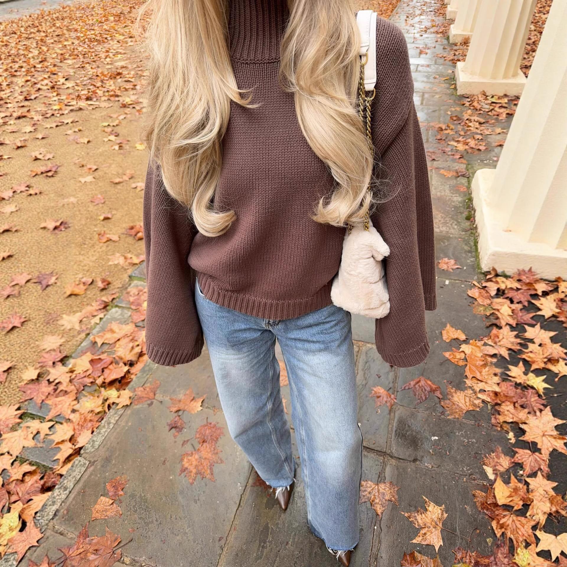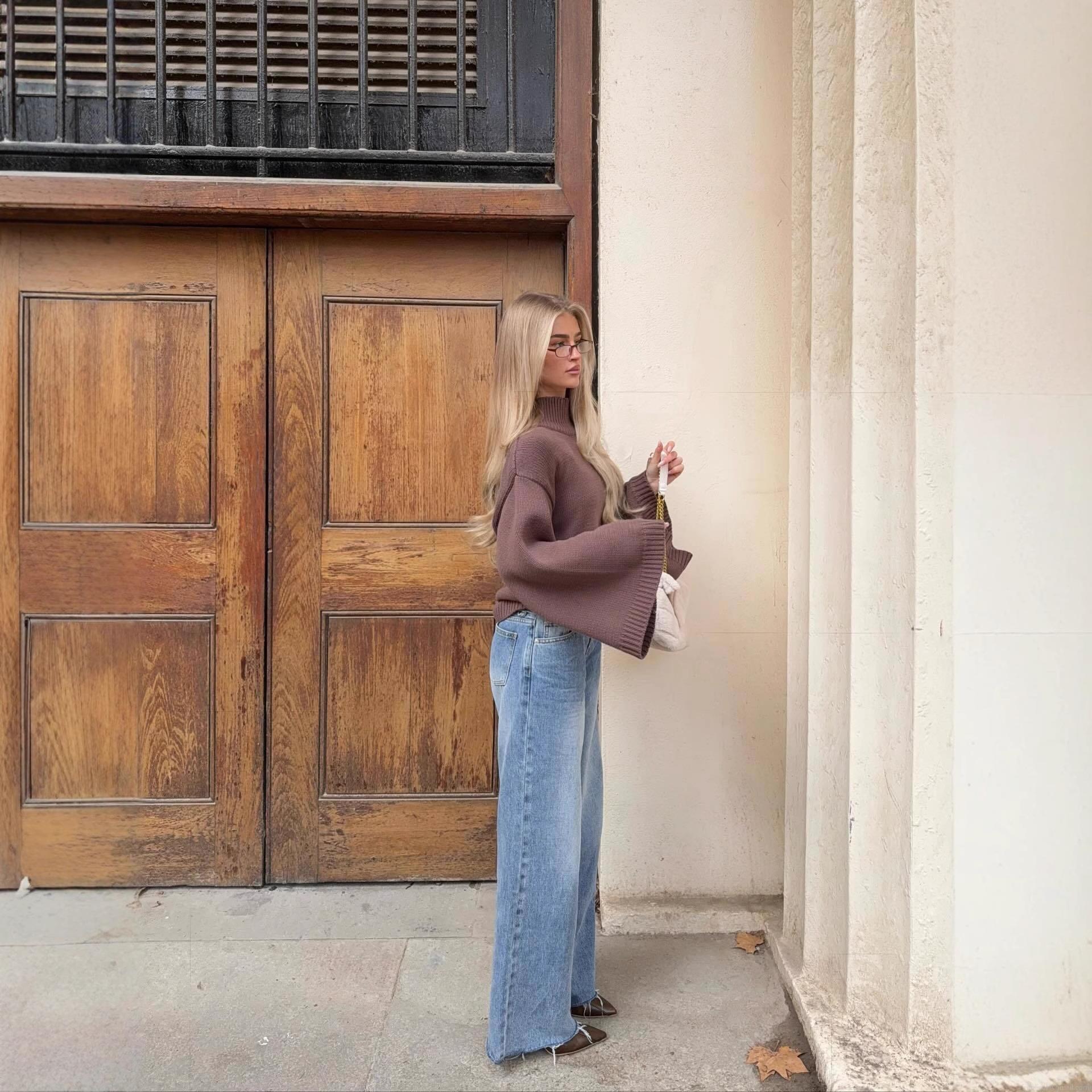 Women's Loose High Collar Knitted Pullover Sweater Oversized Warm Soft Knitwear For Autumn Winter Casual Streetwear Ladies Solid Camel Top