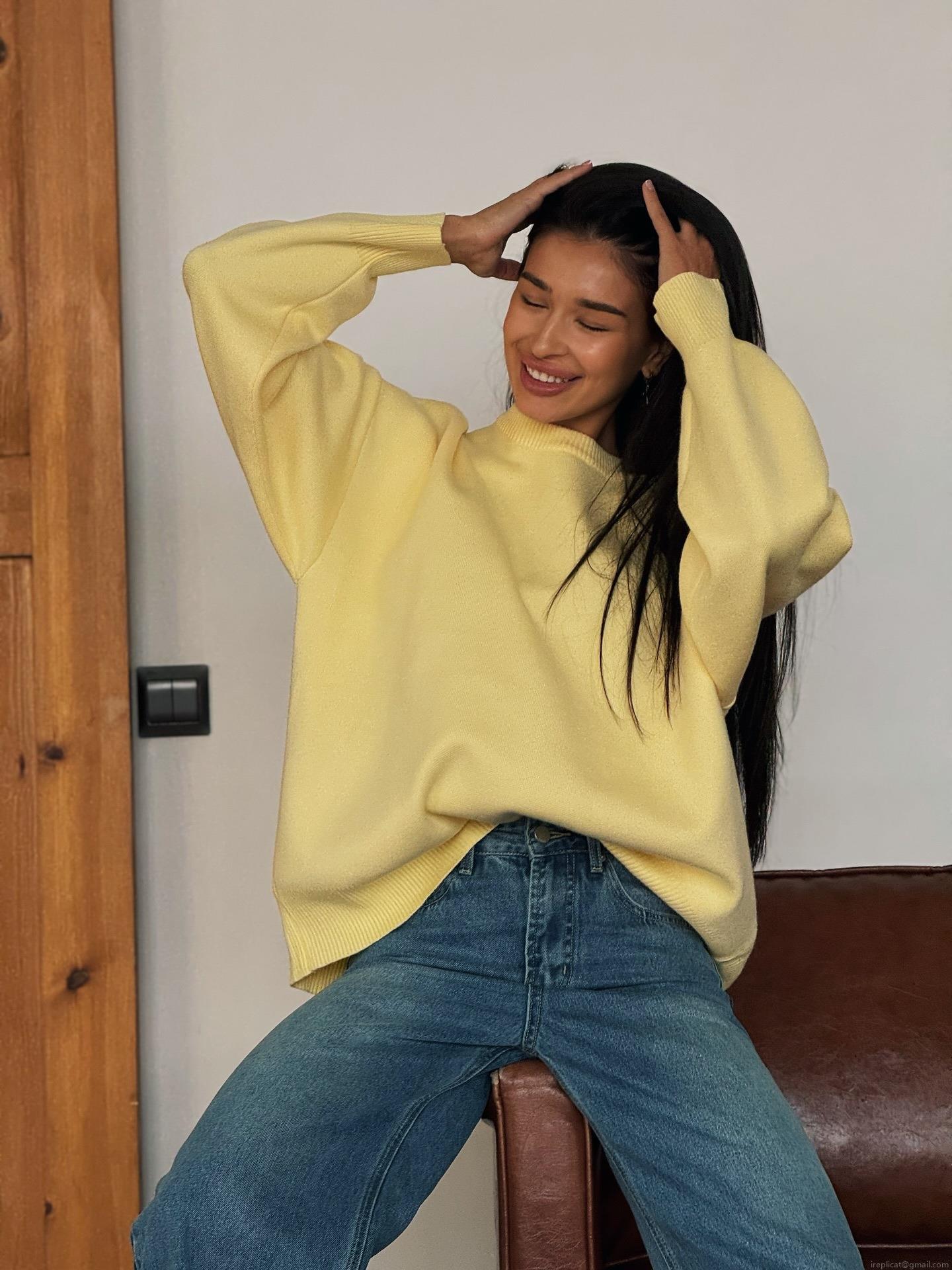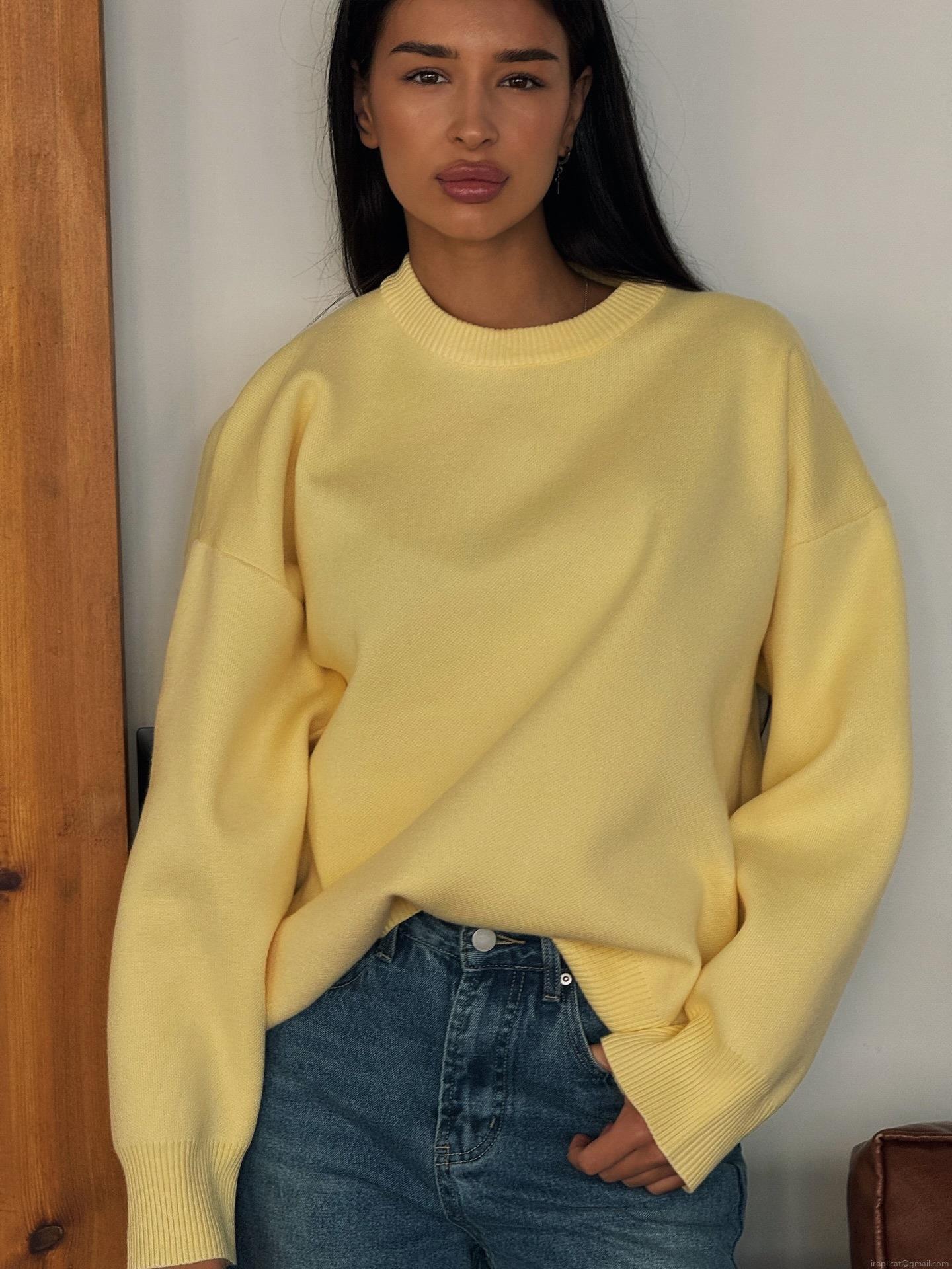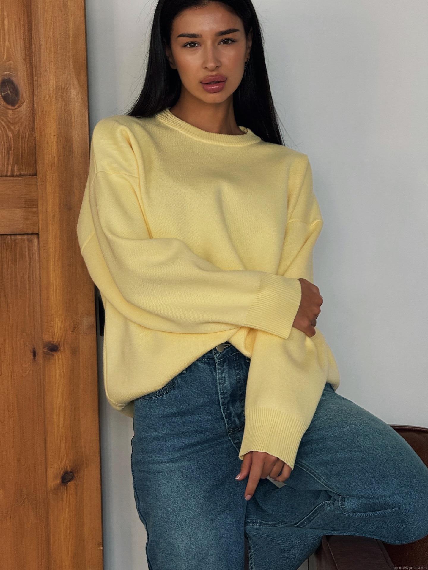 Women's Loose Knit Sweater 80% Cotton Blend Round Neck Pullover Long Sleeve Casual Lazy Style Autumn Winter Jumper Top