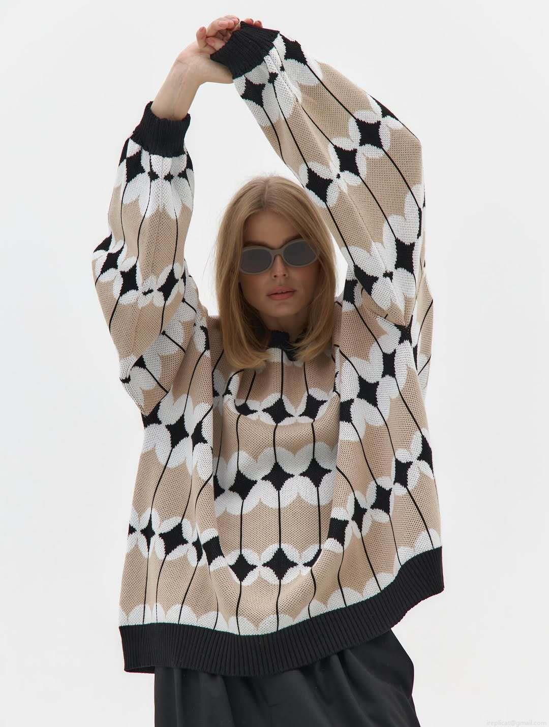 Women's Loose Oversized Knit Sweater Cotton Blend Geometric Argyle Pattern Pullover Round Neck Long Sleeve Warm Knitwear For Autumn Winter Streetwear