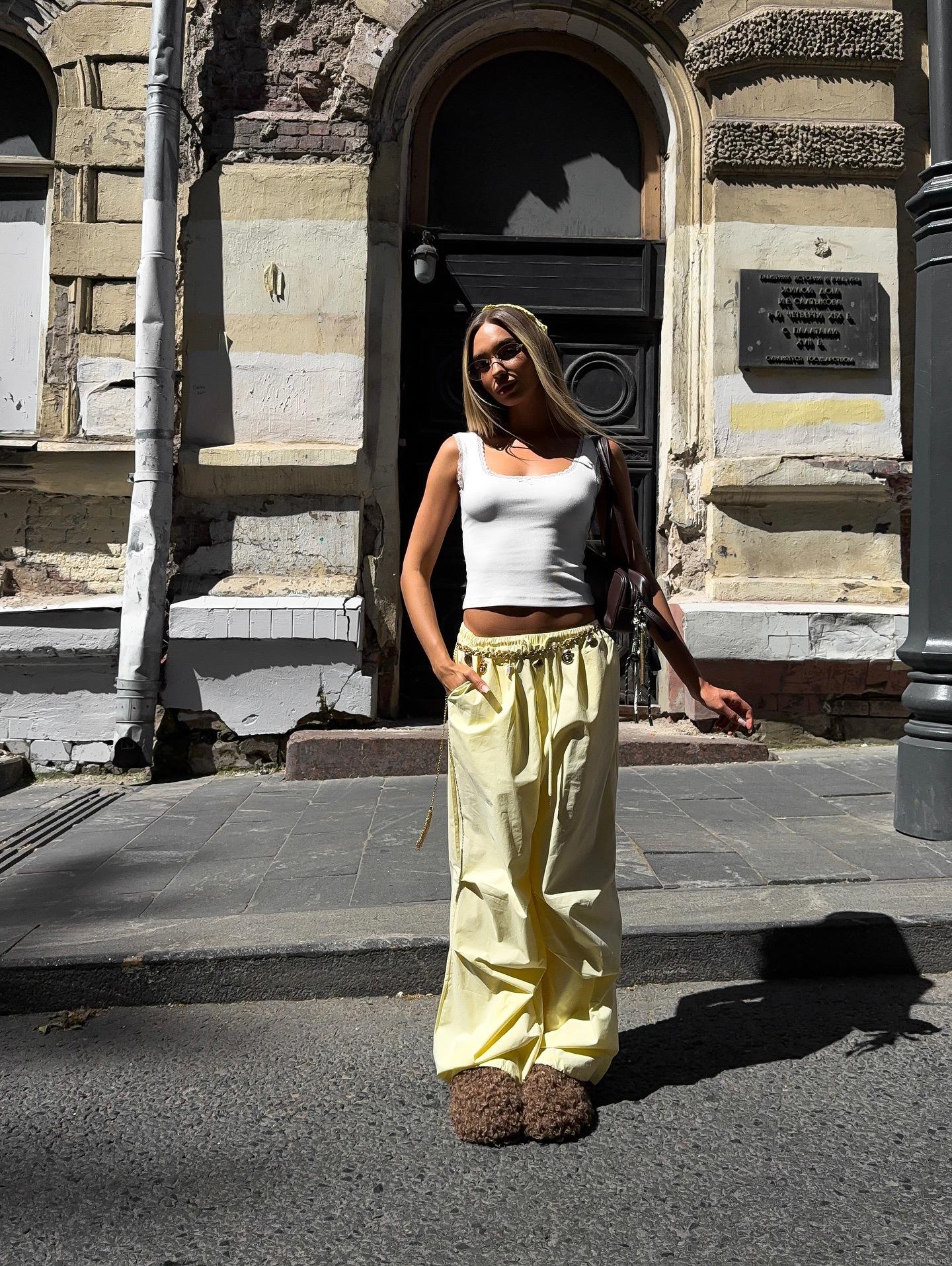 Women's Loose Parachute Pants Streetwear Wide Leg Elastic Waist Drawstring Multi-Pockets Casual Summer Woven Polyester Trousers For Women Trendy